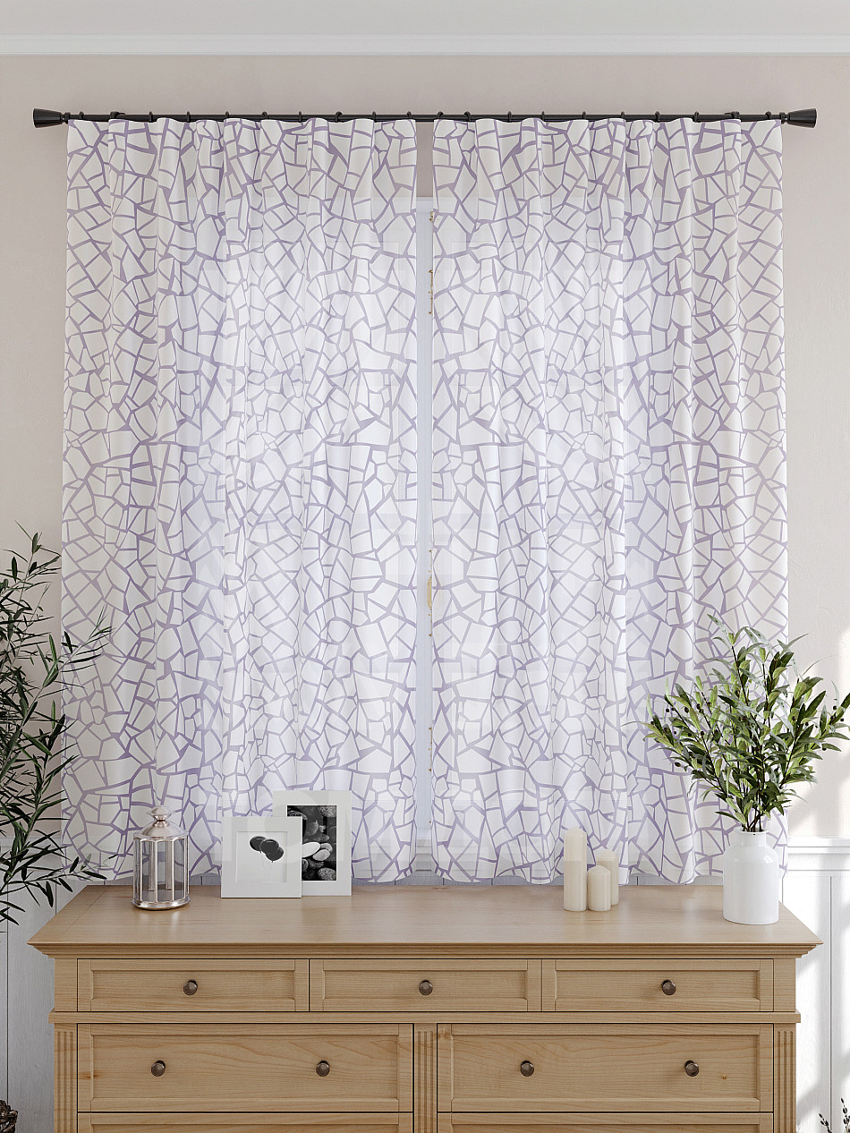 Тюль 2 шт. Подхват - доп.услуга. Легкая основа (вуаль) оформлена принтом. Вуаль с матовой полупрозрачной текстурой. Отличается особым шиком, идеально подходит для создания воздушных штор. Придает ощущение свежести, хорошо пропускает воздух. Ткань неприхотлива в уходе, хорошо стирается без разрушения волокон с течением времени за счет высокого кручения нитей.