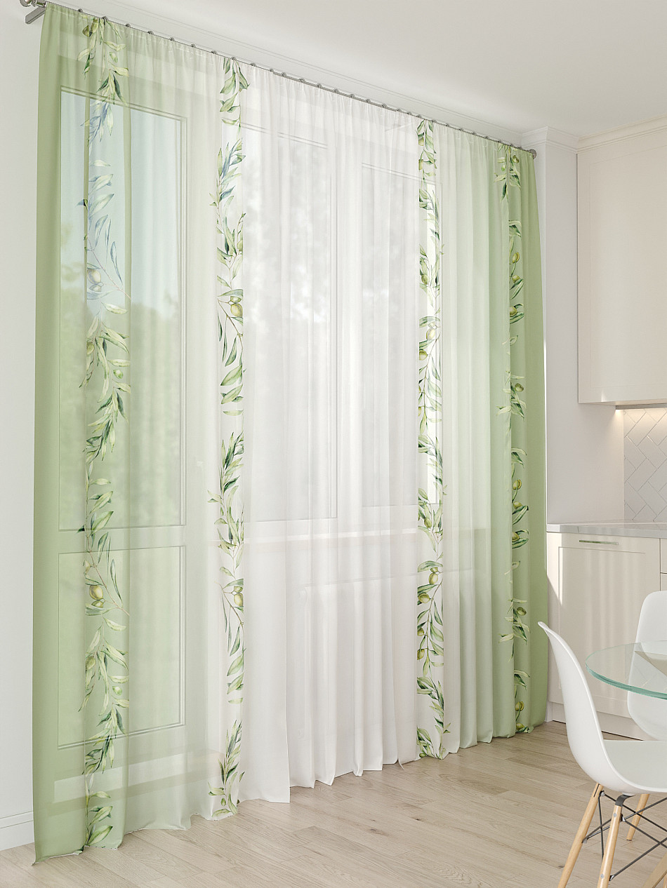 Тюль 3 шт. Легкая основа (вуаль) оформлена фотопечатью. Шторы состоят из 3-х полотен, не сшитых между собой, что обеспечивает легкий доступ к балконной двери. Вуаль с матовой полупрозрачной текстурой. Отличается особым шиком, идеально подходит для создания воздушных штор. Придает ощущение свежести, хорошо пропускает воздух. Ткань неприхотлива в уходе, хорошо стирается без разрушения волокон с течением времени за счет высокого кручения нитей.