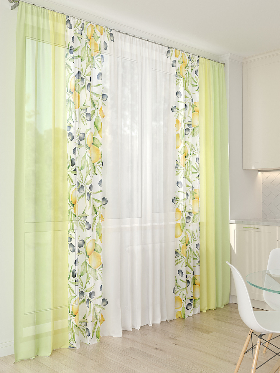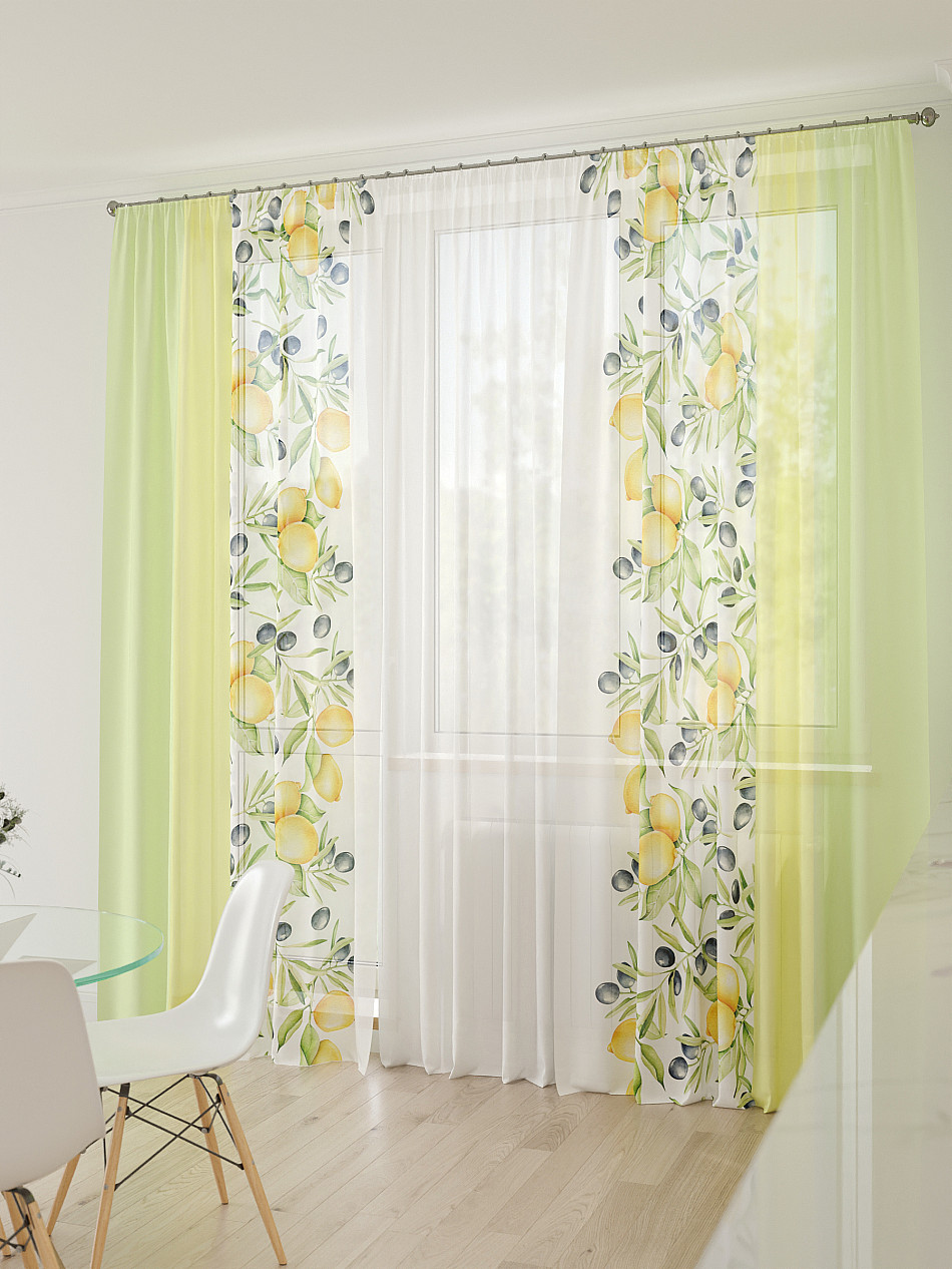 Тюль 3 шт. Легкая основа (вуаль) оформлена фотопечатью. Шторы состоят из 3-х полотен, не сшитых между собой, что обеспечивает легкий доступ к балконной двери. Вуаль с матовой полупрозрачной текстурой. Отличается особым шиком, идеально подходит для создания воздушных штор. Придает ощущение свежести, хорошо пропускает воздух. Ткань неприхотлива в уходе, хорошо стирается без разрушения волокон с течением времени за счет высокого кручения нитей.
