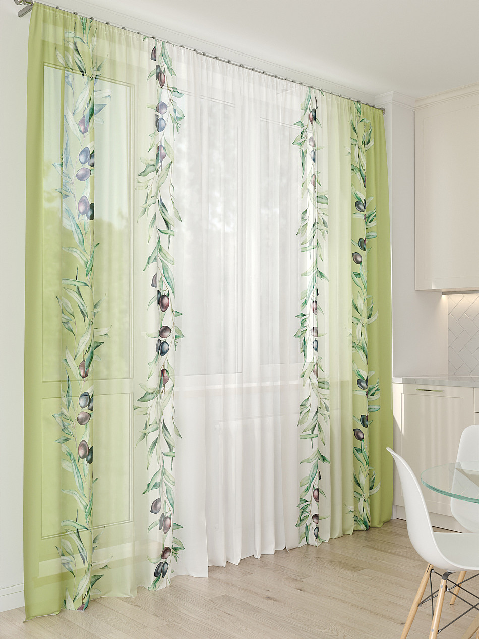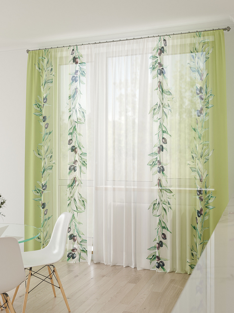 Тюль 3 шт. Легкая основа (вуаль) оформлена фотопечатью. Шторы состоят из 3-х полотен, не сшитых между собой, что обеспечивает легкий доступ к балконной двери. Вуаль с матовой полупрозрачной текстурой. Отличается особым шиком, идеально подходит для создания воздушных штор. Придает ощущение свежести, хорошо пропускает воздух. Ткань неприхотлива в уходе, хорошо стирается без разрушения волокон с течением времени за счет высокого кручения нитей.
