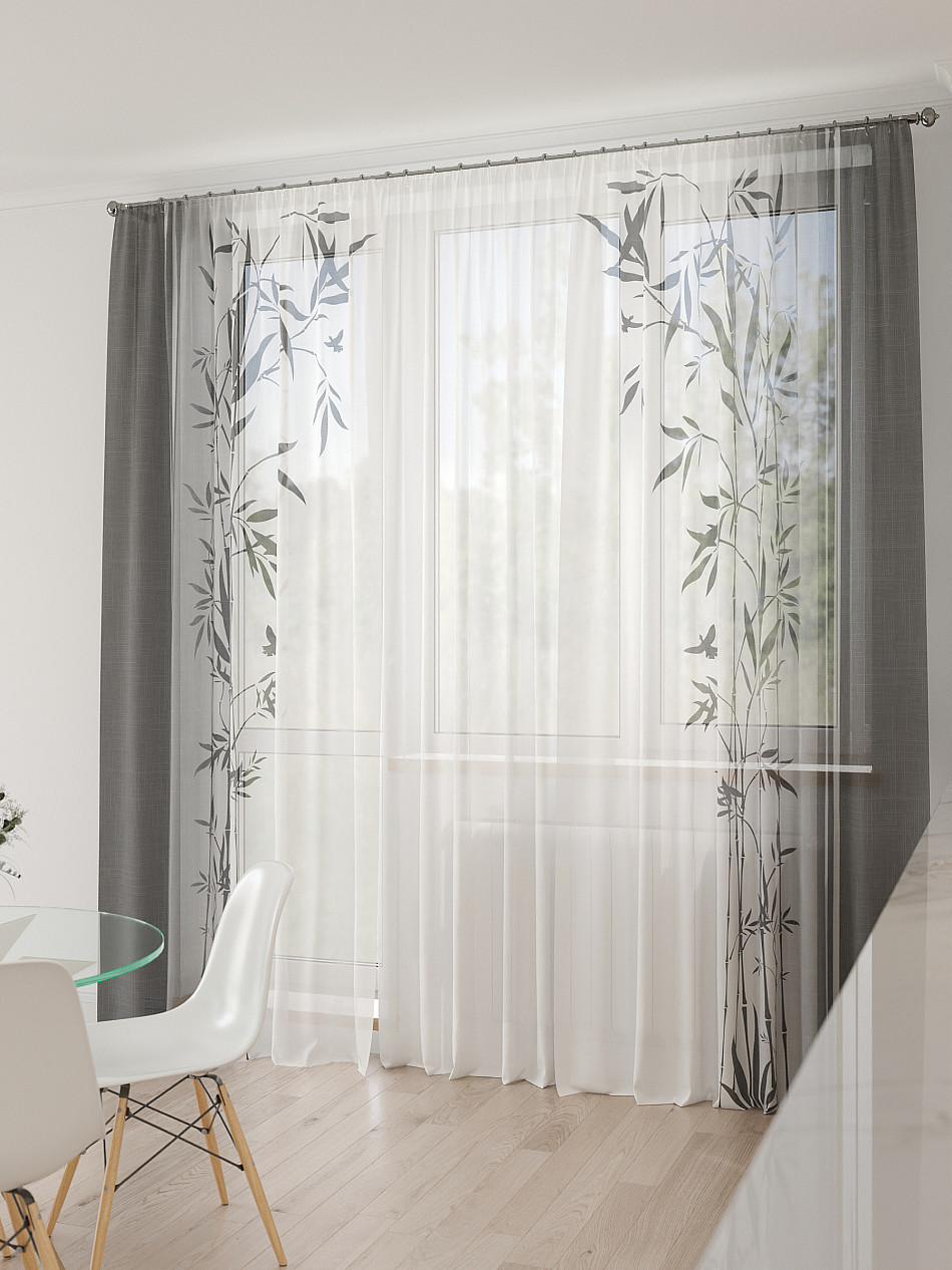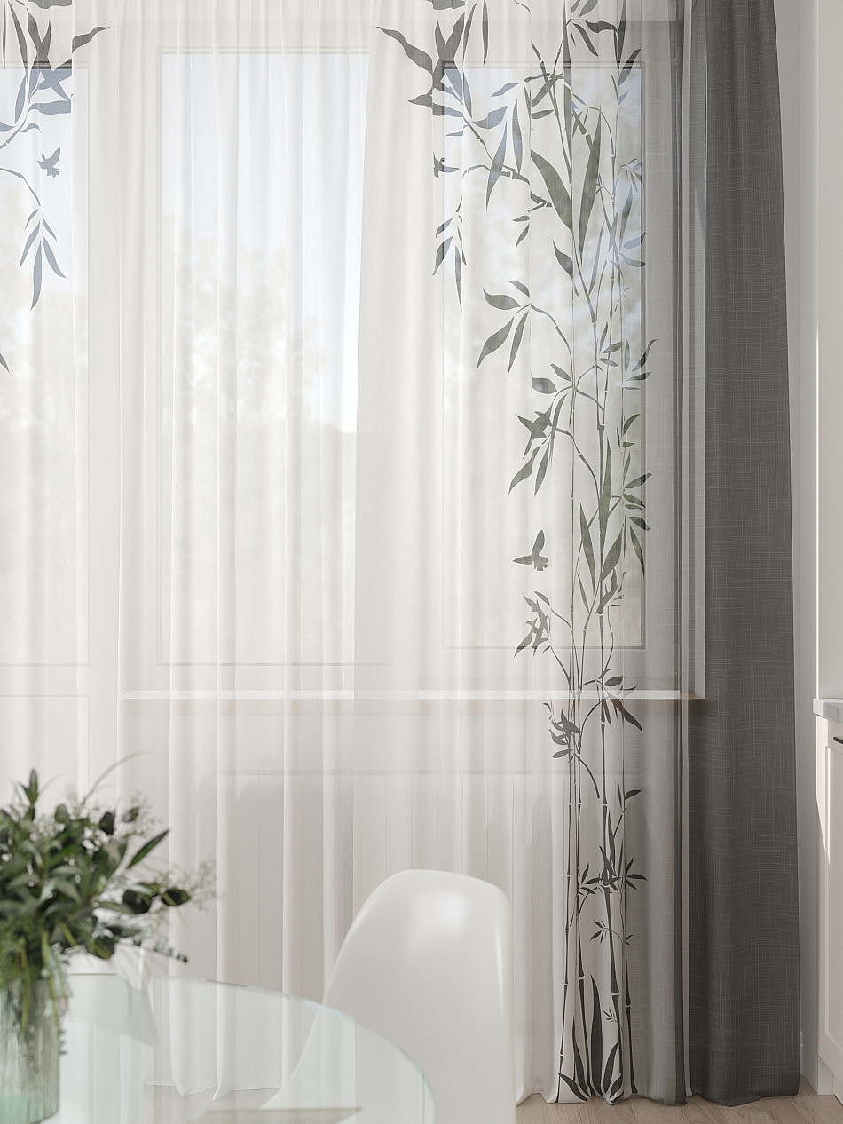 Тюль 3 шт. Легкая основа (вуаль) оформлена фотопечатью. Шторы состоят из 3-х полотен, не сшитых между собой, что обеспечивает легкий доступ к балконной двери. Вуаль с матовой полупрозрачной текстурой. Отличается особым шиком, идеально подходит для создания воздушных штор. Придает ощущение свежести, хорошо пропускает воздух. Ткань неприхотлива в уходе, хорошо стирается без разрушения волокон с течением времени за счет высокого кручения нитей.
