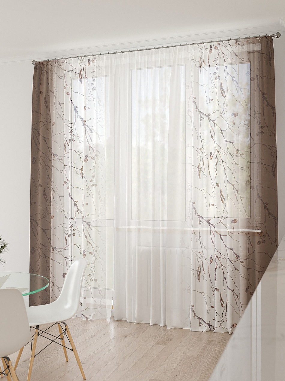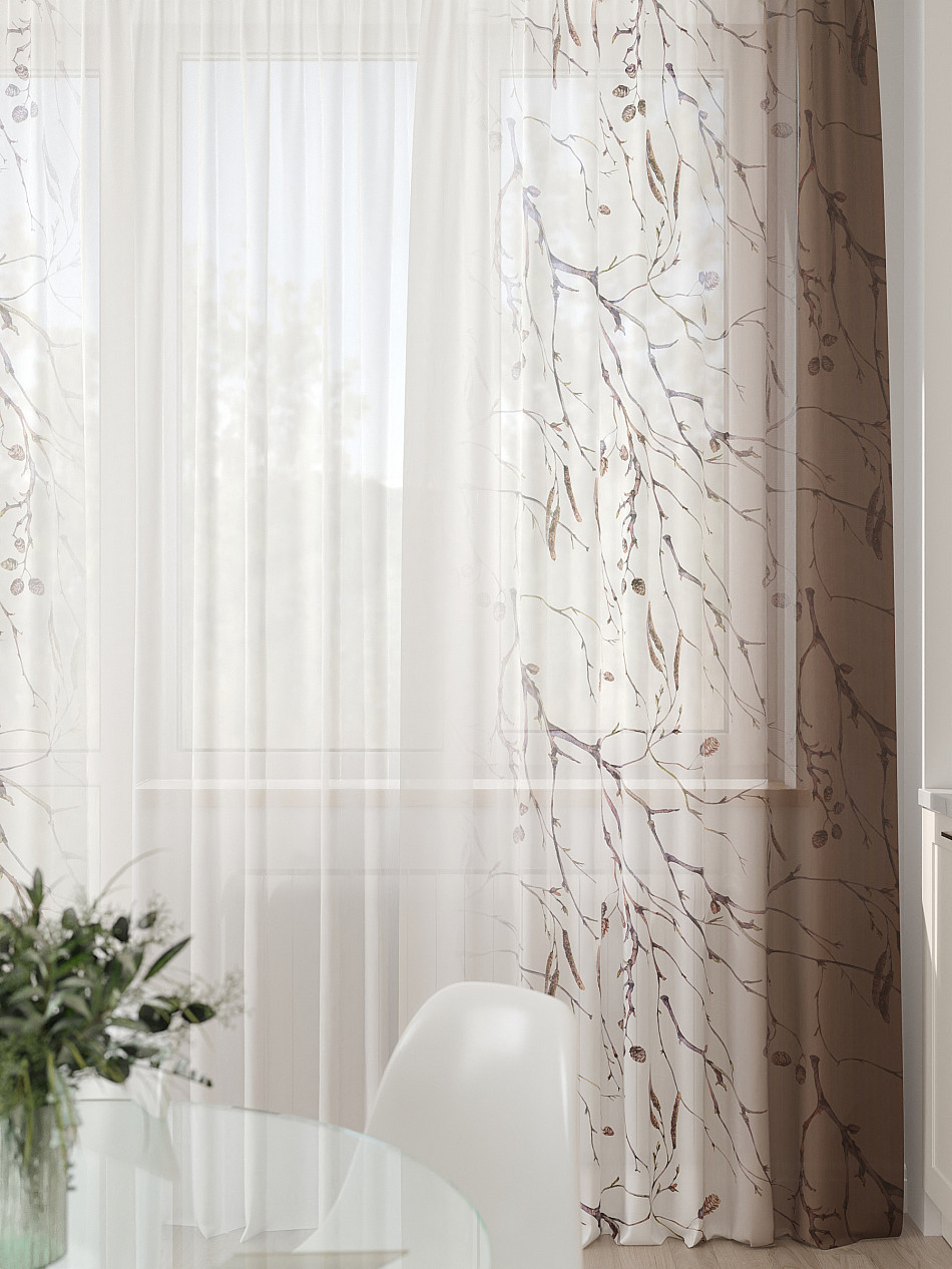Тюль 3 шт. Легкая основа (вуаль) оформлена фотопечатью. Шторы состоят из 3-х полотен, не сшитых между собой, что обеспечивает легкий доступ к балконной двери. Вуаль с матовой полупрозрачной текстурой. Отличается особым шиком, идеально подходит для создания воздушных штор. Придает ощущение свежести, хорошо пропускает воздух. Ткань неприхотлива в уходе, хорошо стирается без разрушения волокон с течением времени за счет высокого кручения нитей.