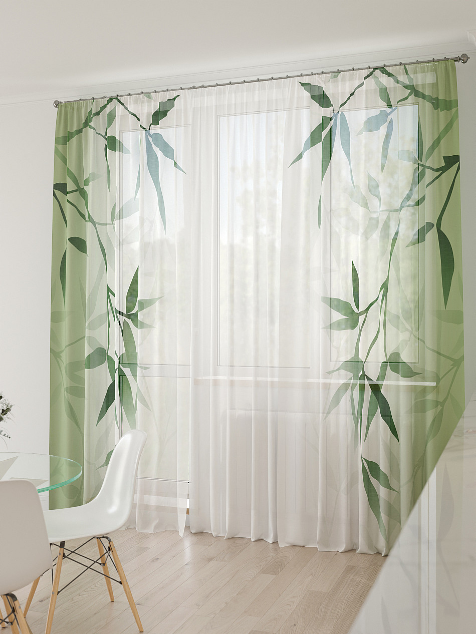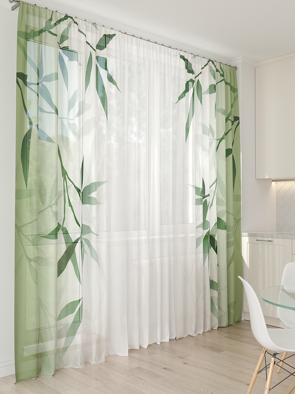 Тюль 3 шт. Легкая основа (вуаль) оформлена фотопечатью. Шторы состоят из 3-х полотен, не сшитых между собой, что обеспечивает легкий доступ к балконной двери. Вуаль с матовой полупрозрачной текстурой. Отличается особым шиком, идеально подходит для создания воздушных штор. Придает ощущение свежести, хорошо пропускает воздух. Ткань неприхотлива в уходе, хорошо стирается без разрушения волокон с течением времени за счет высокого кручения нитей.