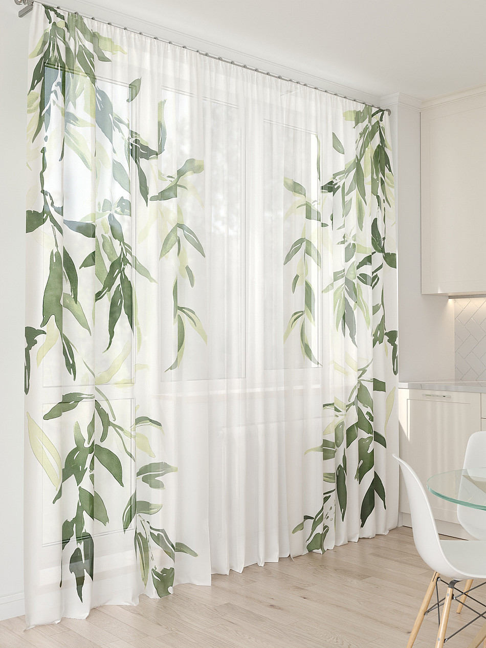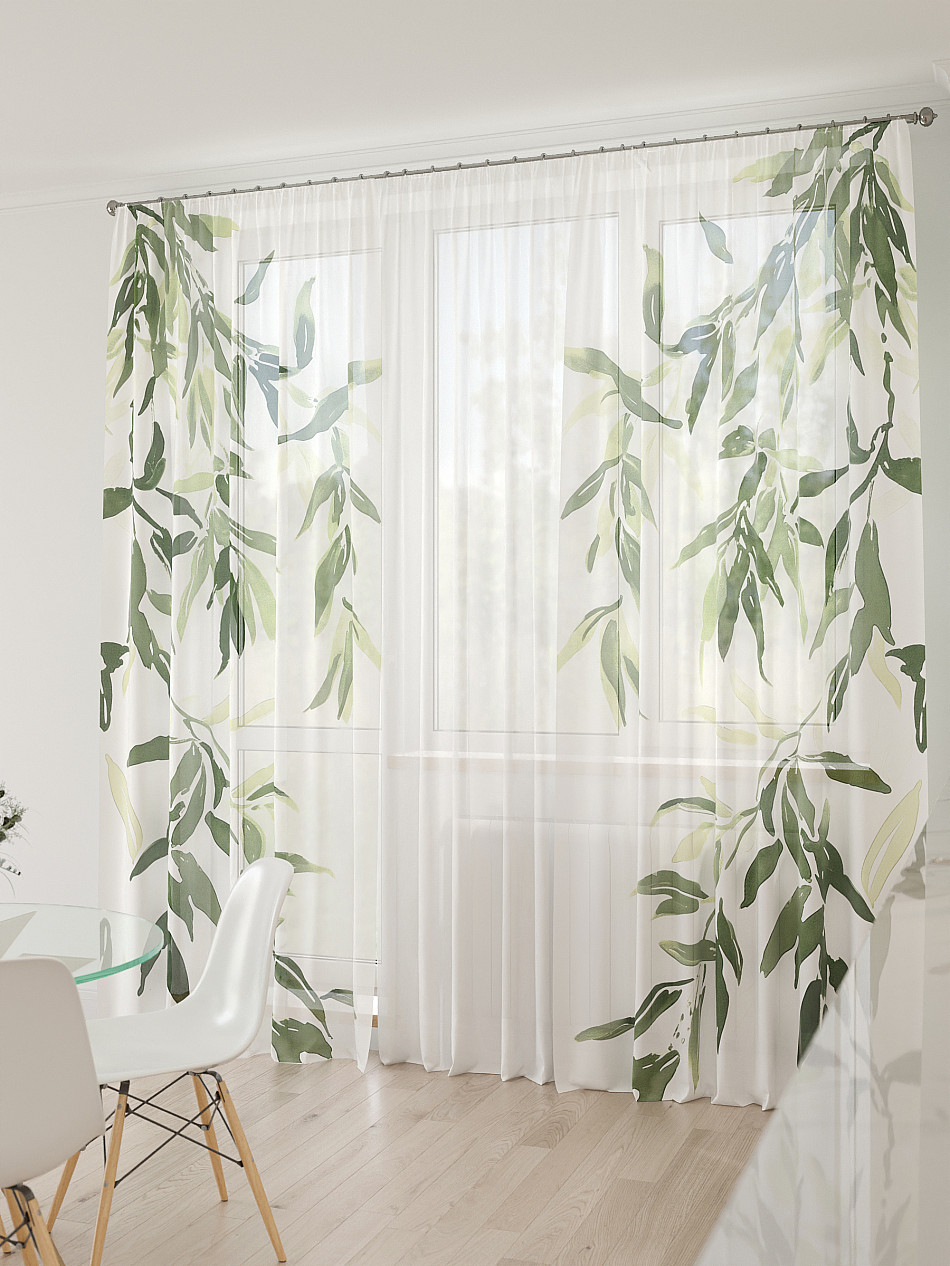 Тюль 3 шт. Легкая основа (вуаль) оформлена фотопечатью. Шторы состоят из 3-х полотен, не сшитых между собой, что обеспечивает легкий доступ к балконной двери. Вуаль с матовой полупрозрачной текстурой. Отличается особым шиком, идеально подходит для создания воздушных штор. Придает ощущение свежести, хорошо пропускает воздух. Ткань неприхотлива в уходе, хорошо стирается без разрушения волокон с течением времени за счет высокого кручения нитей.