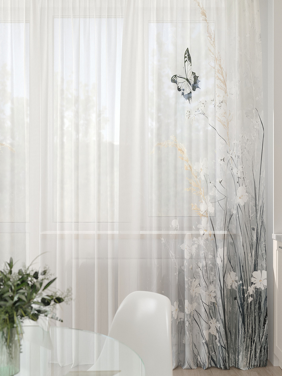 Комбинированные Растения С бабочками Современный Фото принтАксессуары для оформления штор: