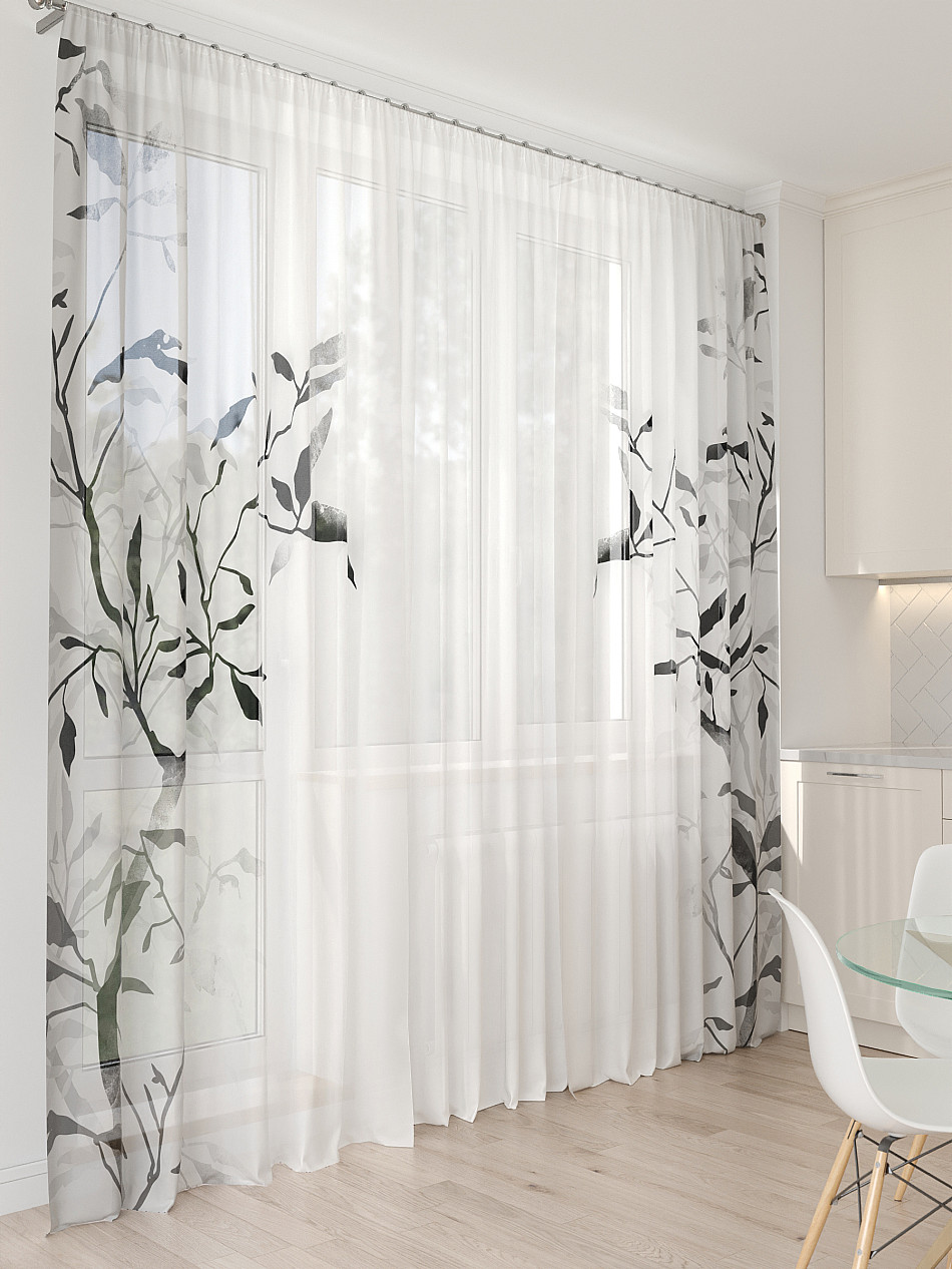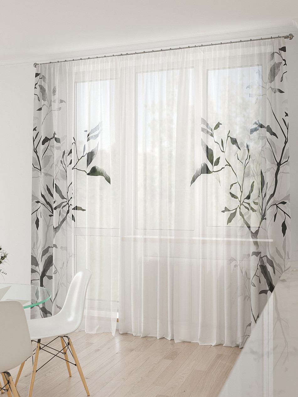 Тюль 3 шт. Легкая основа (вуаль) оформлена фотопечатью. Шторы состоят из 3-х полотен, не сшитых между собой, что обеспечивает легкий доступ к балконной двери. Вуаль с матовой полупрозрачной текстурой. Отличается особым шиком, идеально подходит для создания воздушных штор. Придает ощущение свежести, хорошо пропускает воздух. Ткань неприхотлива в уходе, хорошо стирается без разрушения волокон с течением времени за счет высокого кручения нитей.
