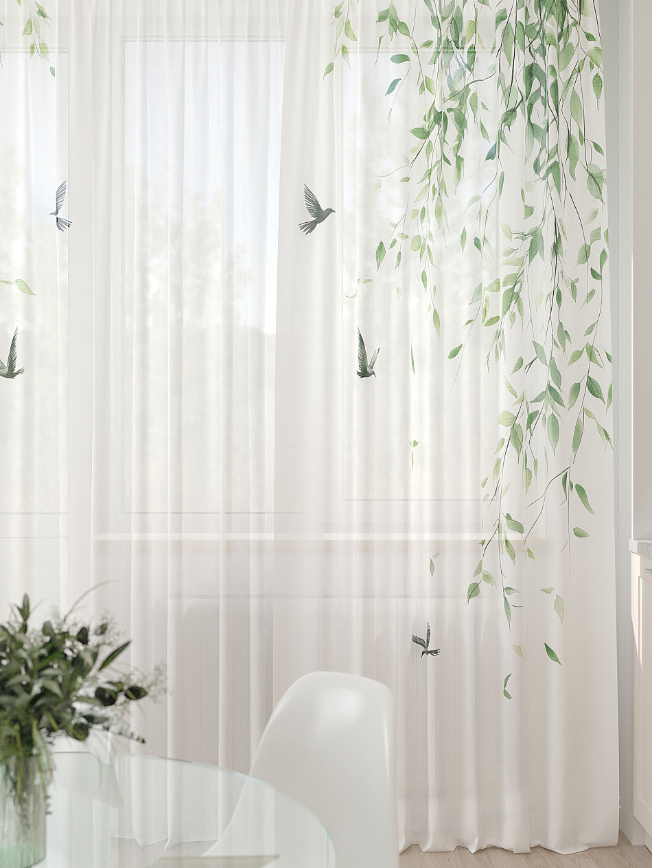 Комбинированные Птицы Растения Современный Фото принтАксессуары для оформления штор: