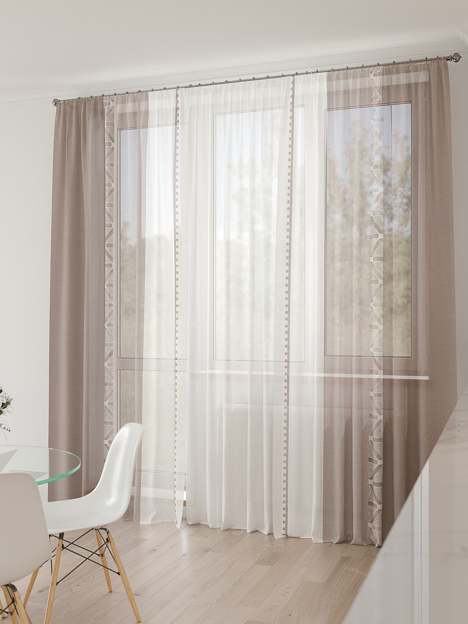 Вуаль – невесомая, практически прозрачная и очень нежная ткань, которая прекрасно смотрится в любом интерьере. Вуалевые шторы изысканны и элегантны как соло, так и в составе шторных ансамблей. Такие гардины придают окну воздушность, легко драпируются, мягко преломляют солнечные лучи и вносят изящество в оформление комнаты. Благодаря широкому ассортименту можно выбрать однотонные вуалевые шторы, либо с орнаментом, с аппликацией или вышивкой, в любом случае ваш выбор будет смотреться красиво и современно.