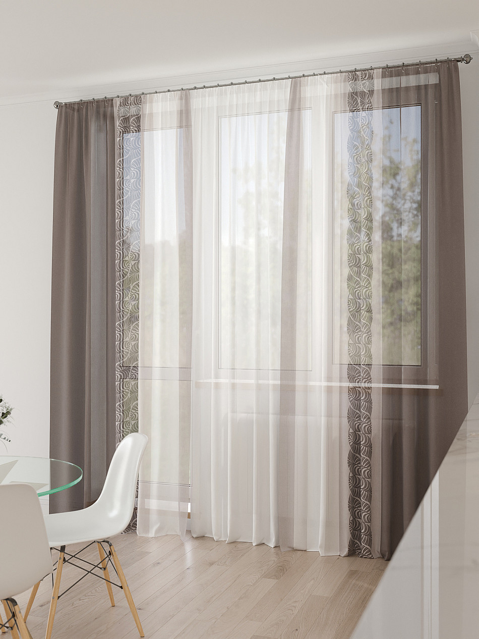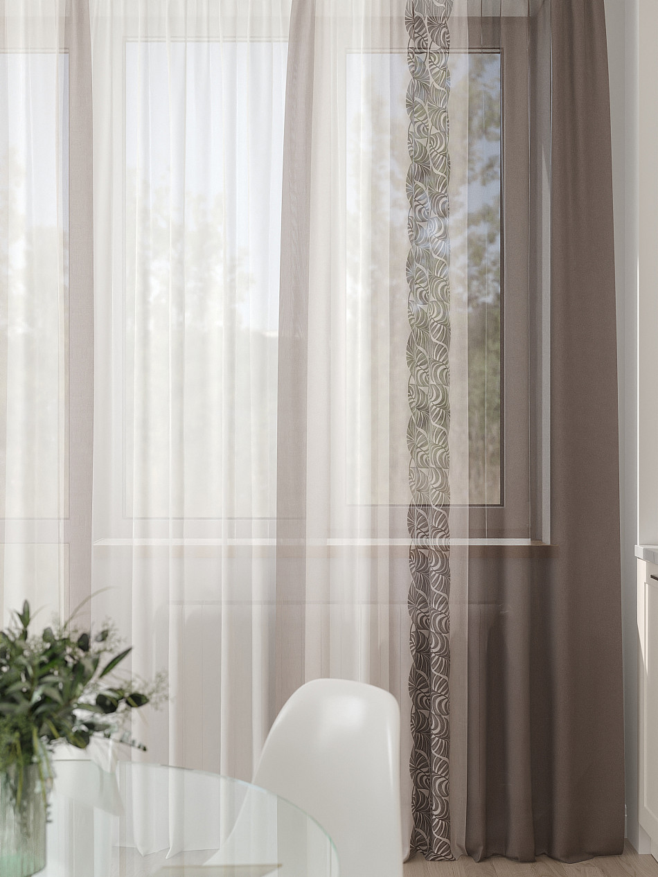 Вуаль – невесомая, практически прозрачная и очень нежная ткань, которая прекрасно смотрится в любом интерьере. Вуалевые шторы изысканны и элегантны как соло, так и в составе шторных ансамблей. Такие гардины придают окну воздушность, легко драпируются, мягко преломляют солнечные лучи и вносят изящество в оформление комнаты. Благодаря широкому ассортименту можно выбрать однотонные вуалевые шторы, либо с орнаментом, с аппликацией или вышивкой, в любом случае ваш выбор будет смотреться красиво и современно.