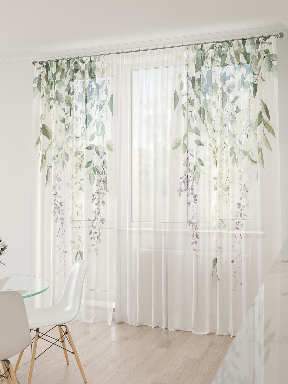 Тюль 3 шт. Легкая основа (вуаль) оформлена фотопечатью. Шторы состоят из 3-х полотен, не сшитых между собой, что обеспечивает легкий доступ к балконной двери. Вуаль с матовой полупрозрачной текстурой. Отличается особым шиком, идеально подходит для создания воздушных штор. Придает ощущение свежести, хорошо пропускает воздух. Ткань неприхотлива в уходе, хорошо стирается без разрушения волокон с течением времени за счет высокого кручения нитей.