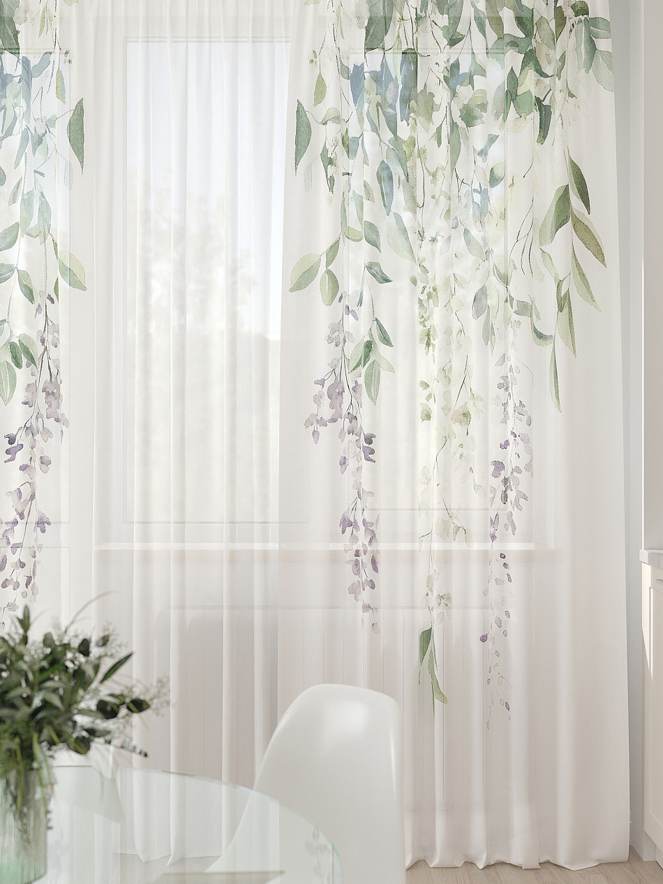 - Вуаль портьеры для кухни с принтом