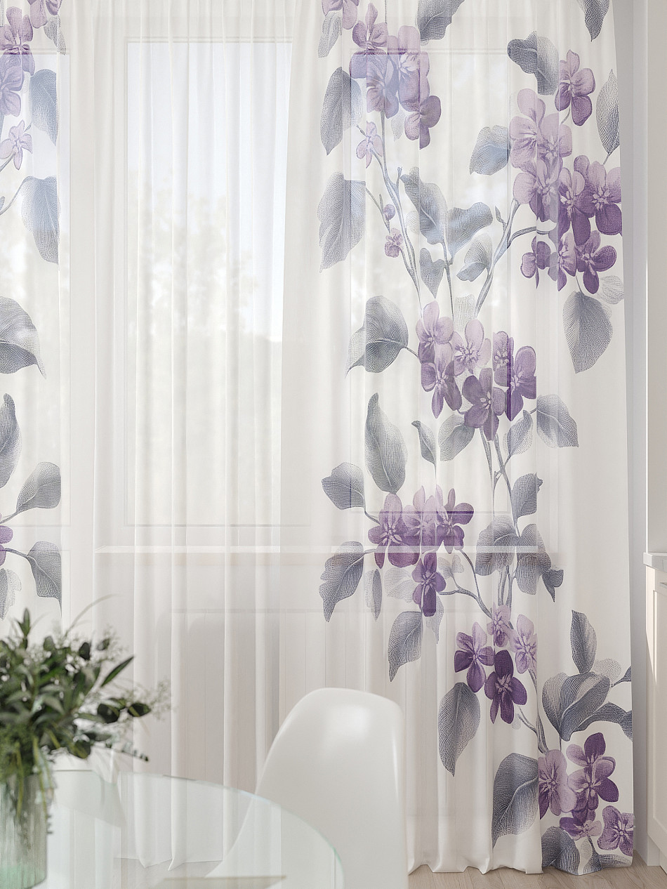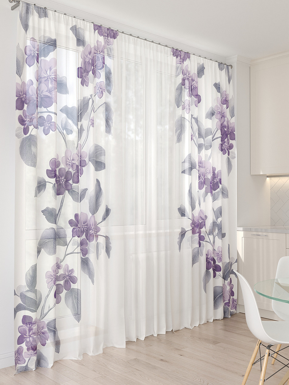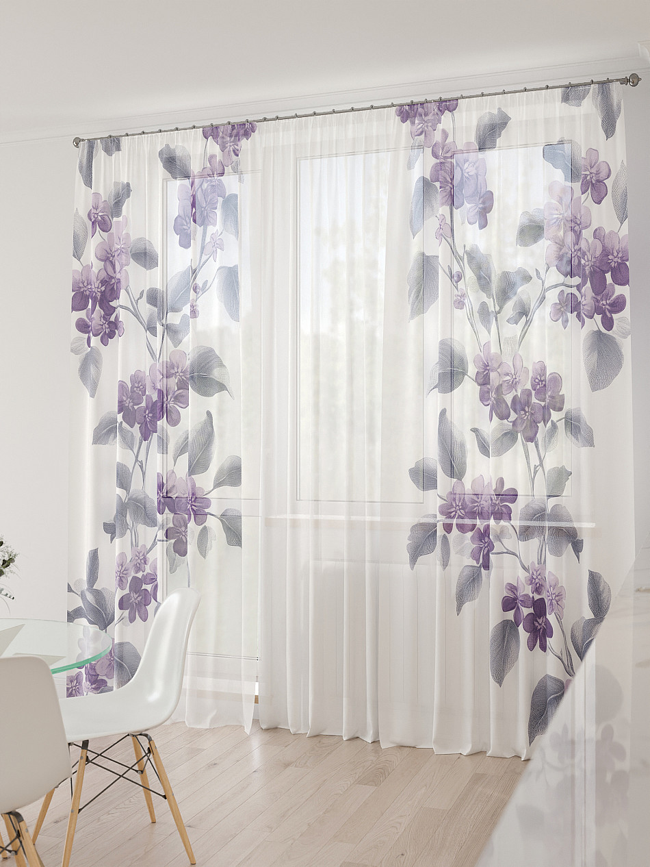 Тюль 3 шт. Легкая основа (вуаль) оформлена фотопечатью. Шторы состоят из 3-х полотен, не сшитых между собой, что обеспечивает легкий доступ к балконной двери. Вуаль с матовой полупрозрачной текстурой. Отличается особым шиком, идеально подходит для создания воздушных штор. Придает ощущение свежести, хорошо пропускает воздух. Ткань неприхотлива в уходе, хорошо стирается без разрушения волокон с течением времени за счет высокого кручения нитей.