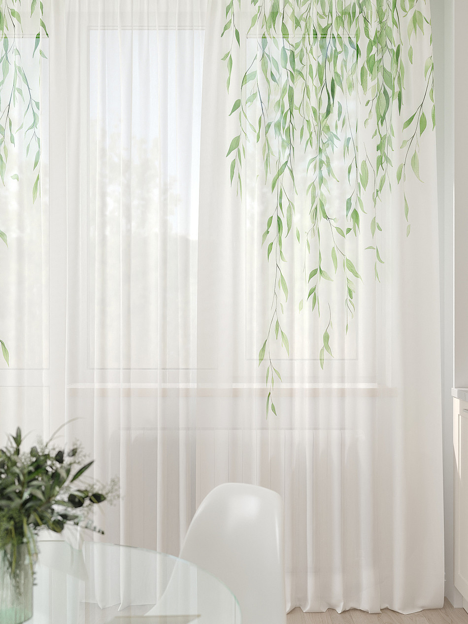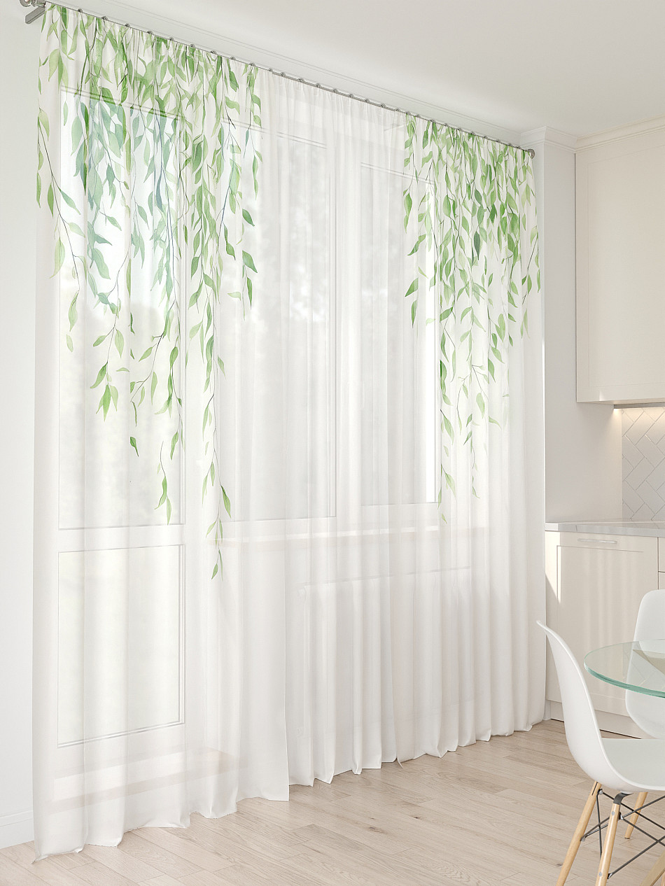 - Вуаль портьеры для кухни с принтом