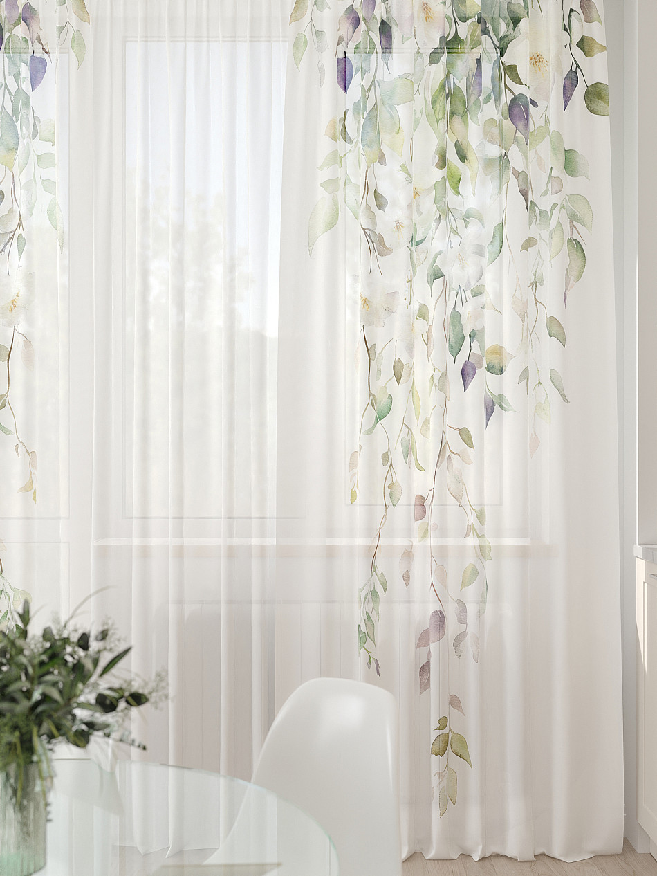 - Вуаль портьеры для кухни с принтом