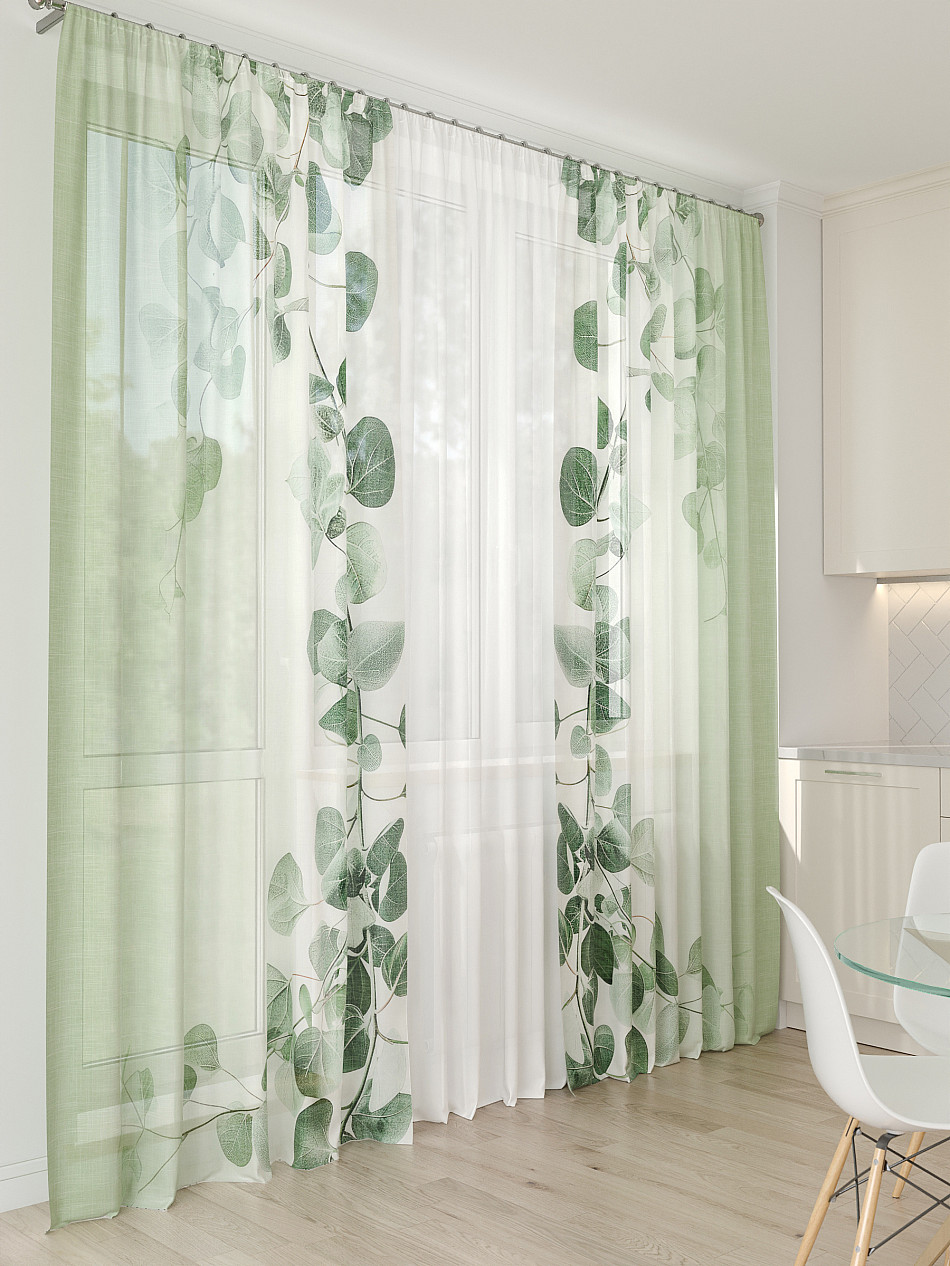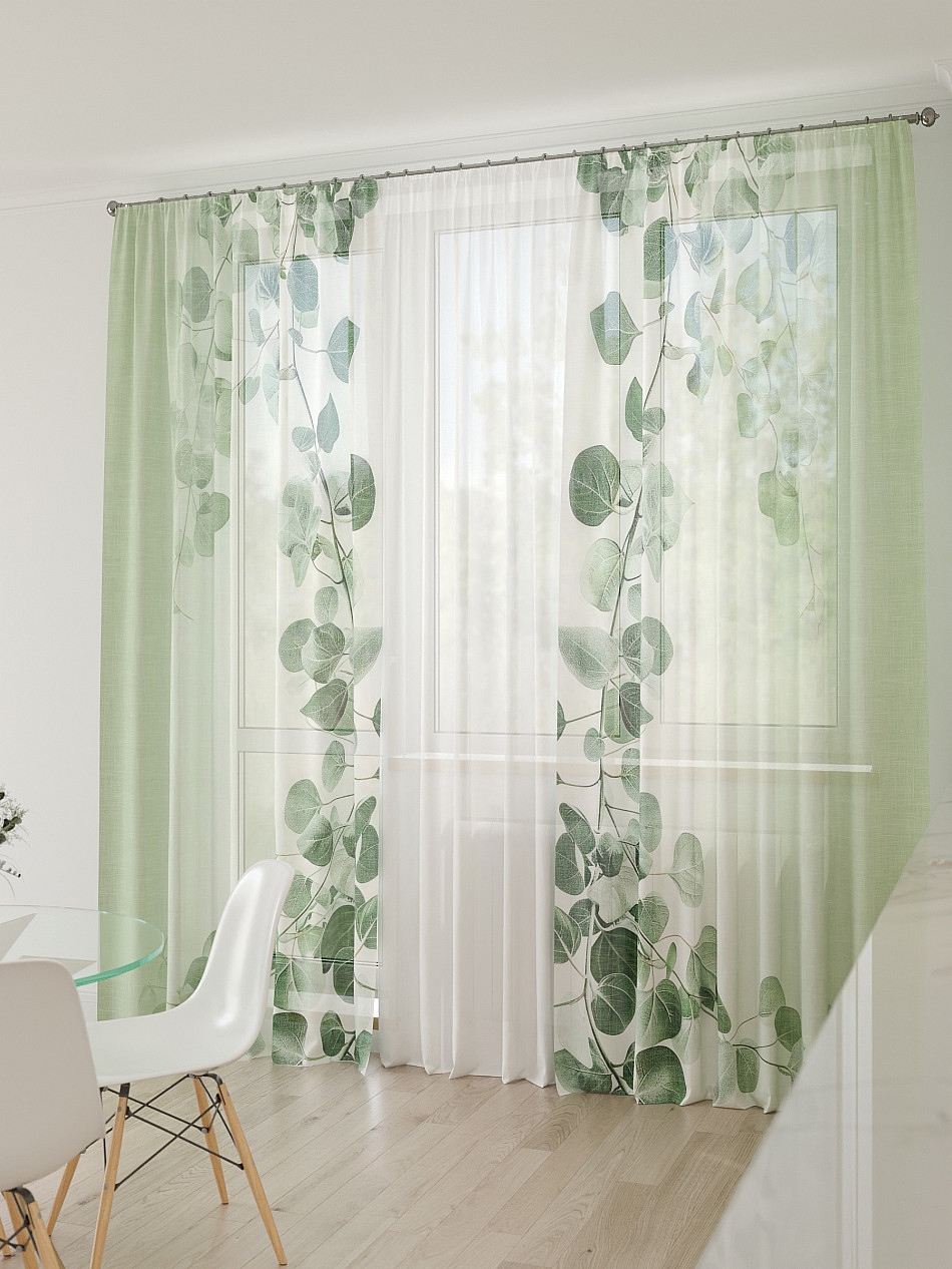 Тюль 3 шт. Легкая основа (вуаль) оформлена фотопечатью. Шторы состоят из 3-х полотен, не сшитых между собой, что обеспечивает легкий доступ к балконной двери. Вуаль с матовой полупрозрачной текстурой. Отличается особым шиком, идеально подходит для создания воздушных штор. Придает ощущение свежести, хорошо пропускает воздух. Ткань неприхотлива в уходе, хорошо стирается без разрушения волокон с течением времени за счет высокого кручения нитей.