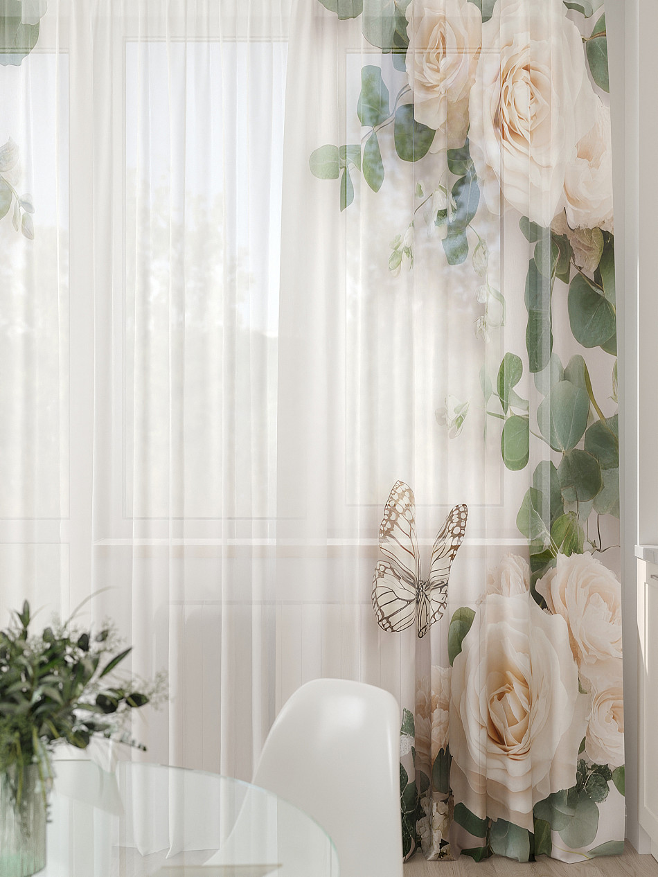 Комбинированные С бабочками С розами Современный Фото принт ЦветочныйАксессуары для оформления штор: