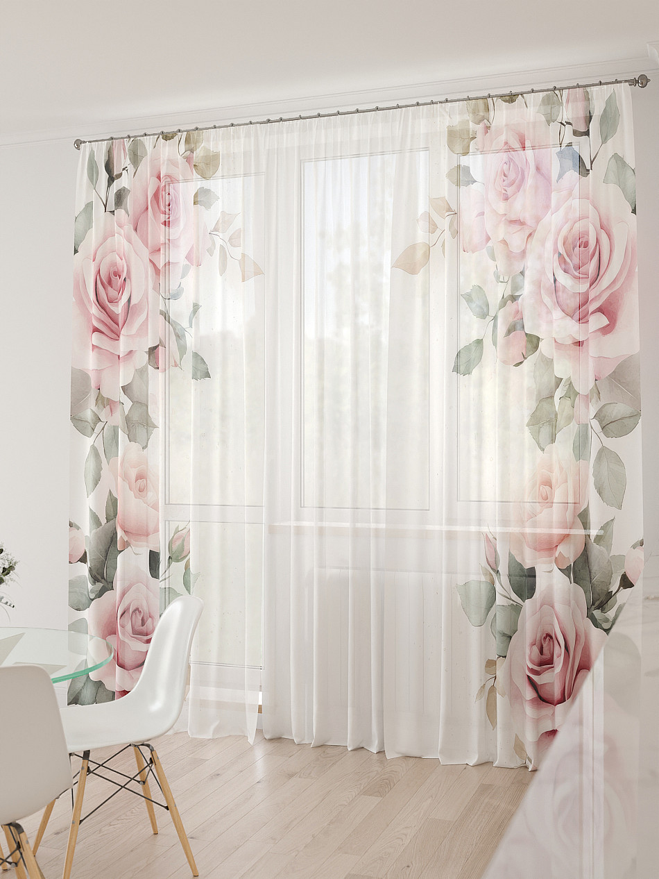 Тюль 3 шт. Легкая основа (вуаль) оформлена фотопечатью. Шторы состоят из 3-х полотен, не сшитых между собой, что обеспечивает легкий доступ к балконной двери. Вуаль с матовой полупрозрачной текстурой. Отличается особым шиком, идеально подходит для создания воздушных штор. Придает ощущение свежести, хорошо пропускает воздух. Ткань неприхотлива в уходе, хорошо стирается без разрушения волокон с течением времени за счет высокого кручения нитей.