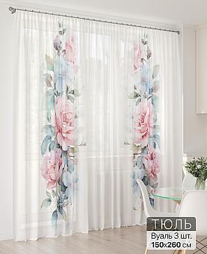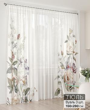 Тюль 3 шт. Легкая основа (вуаль) оформлена фотопечатью. Шторы состоят из 3-х полотен, не сшитых между собой, что обеспечивает легкий доступ к балконной двери. Вуаль с матовой полупрозрачной текстурой. Отличается особым шиком, идеально подходит для создания воздушных штор. Придает ощущение свежести, хорошо пропускает воздух. Ткань неприхотлива в уходе, хорошо стирается без разрушения волокон с течением времени за счет высокого кручения нитей.
