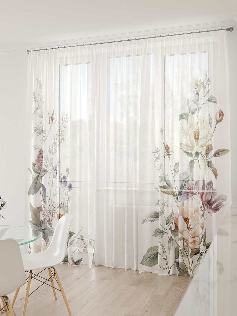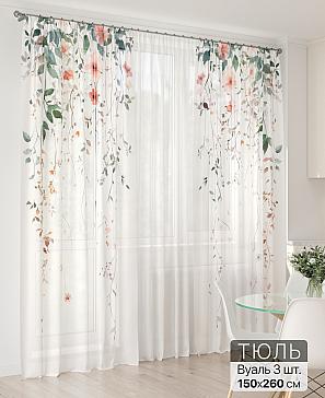 Тюль 3 шт. Легкая основа (вуаль) оформлена фотопечатью. Шторы состоят из 3-х полотен, не сшитых между собой, что обеспечивает легкий доступ к балконной двери. Вуаль с матовой полупрозрачной текстурой. Отличается особым шиком, идеально подходит для создания воздушных штор. Придает ощущение свежести, хорошо пропускает воздух. Ткань неприхотлива в уходе, хорошо стирается без разрушения волокон с течением времени за счет высокого кручения нитей.