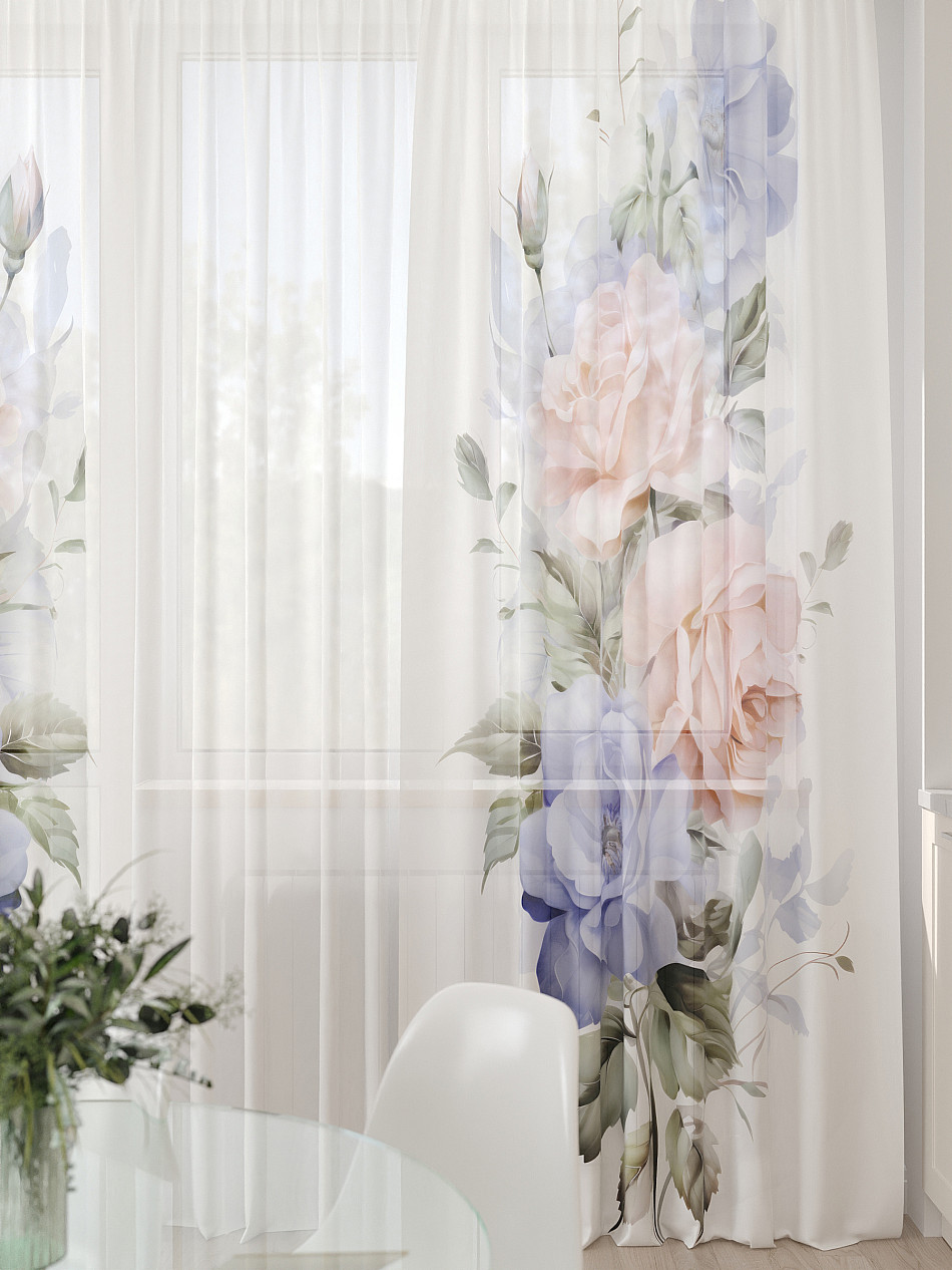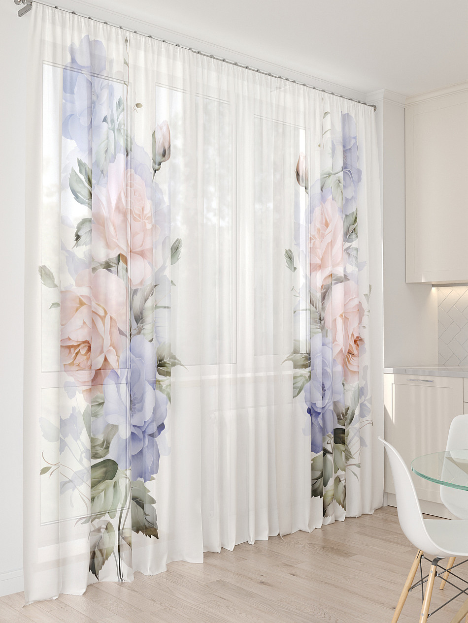 Тюль 3 шт. Легкая основа (вуаль) оформлена фотопечатью. Шторы состоят из 3-х полотен, не сшитых между собой, что обеспечивает легкий доступ к балконной двери. Вуаль с матовой полупрозрачной текстурой. Отличается особым шиком, идеально подходит для создания воздушных штор. Придает ощущение свежести, хорошо пропускает воздух. Ткань неприхотлива в уходе, хорошо стирается без разрушения волокон с течением времени за счет высокого кручения нитей.