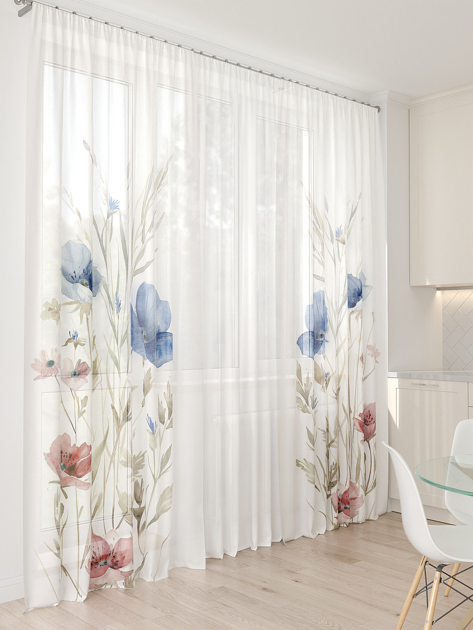 Тюль 3 шт. Легкая основа (вуаль) оформлена фотопечатью. Шторы состоят из 3-х полотен, не сшитых между собой, что обеспечивает легкий доступ к балконной двери. Вуаль с матовой полупрозрачной текстурой. Отличается особым шиком, идеально подходит для создания воздушных штор. Придает ощущение свежести, хорошо пропускает воздух. Ткань неприхотлива в уходе, хорошо стирается без разрушения волокон с течением времени за счет высокого кручения нитей.