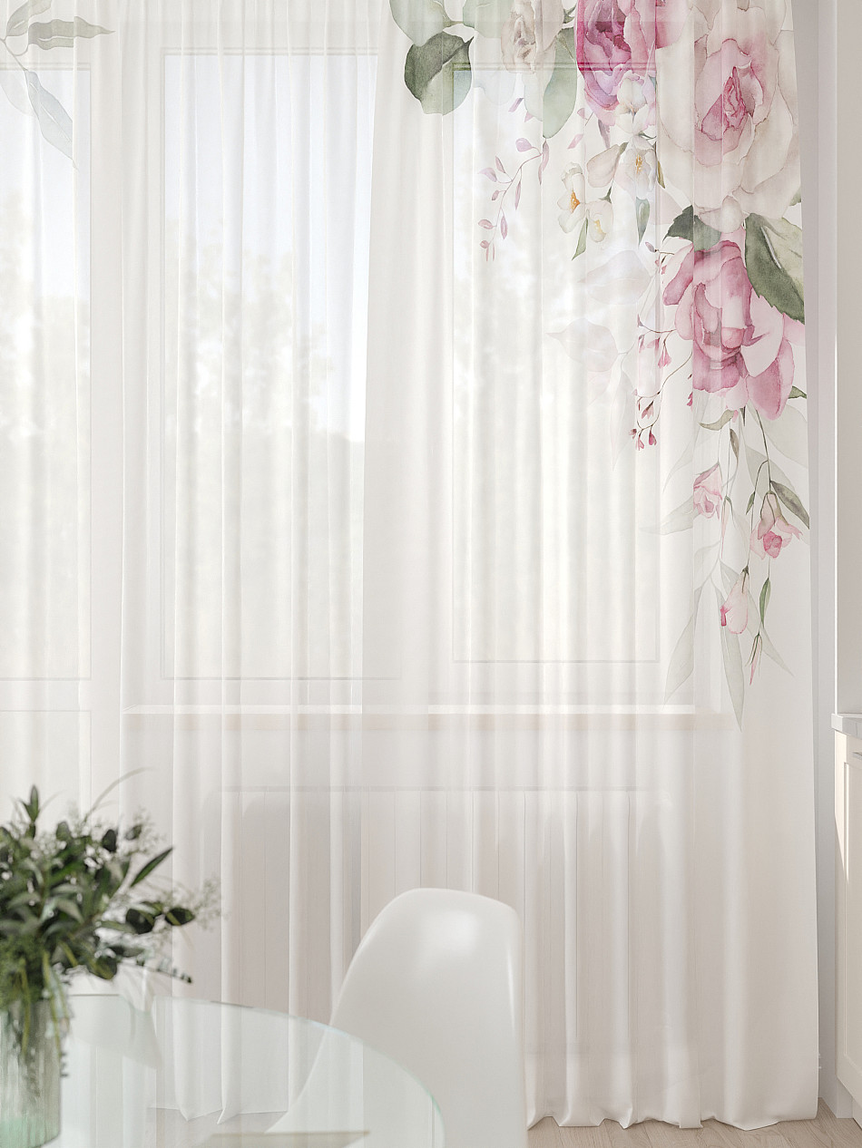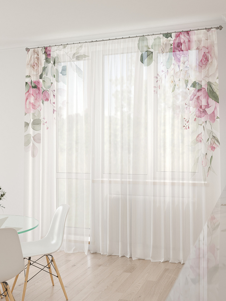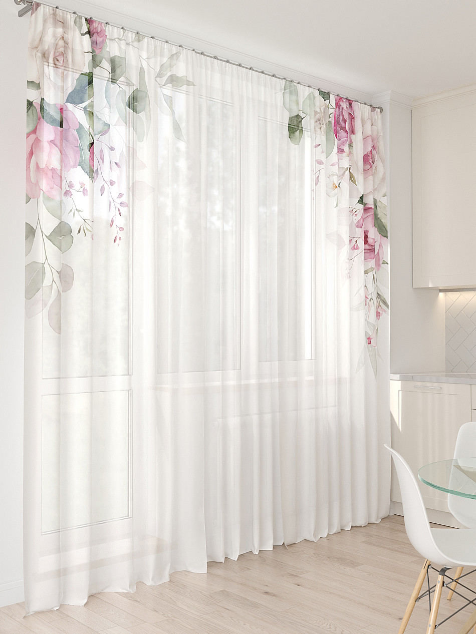 Тюль 3 шт. Легкая основа (вуаль) оформлена фотопечатью. Шторы состоят из 3-х полотен, не сшитых между собой, что обеспечивает легкий доступ к балконной двери. Вуаль с матовой полупрозрачной текстурой. Отличается особым шиком, идеально подходит для создания воздушных штор. Придает ощущение свежести, хорошо пропускает воздух. Ткань неприхотлива в уходе, хорошо стирается без разрушения волокон с течением времени за счет высокого кручения нитей.