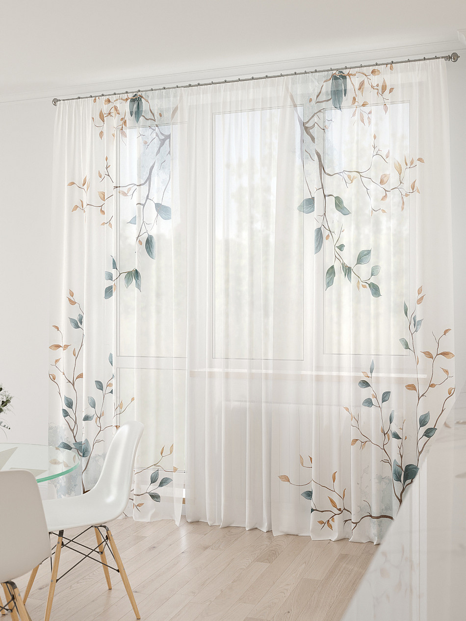 Тюль 3 шт. Легкая основа (вуаль) оформлена фотопечатью. Шторы состоят из 3-х полотен, не сшитых между собой, что обеспечивает легкий доступ к балконной двери. Вуаль с матовой полупрозрачной текстурой. Отличается особым шиком, идеально подходит для создания воздушных штор. Придает ощущение свежести, хорошо пропускает воздух. Ткань неприхотлива в уходе, хорошо стирается без разрушения волокон с течением времени за счет высокого кручения нитей.