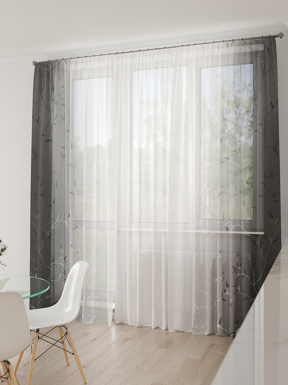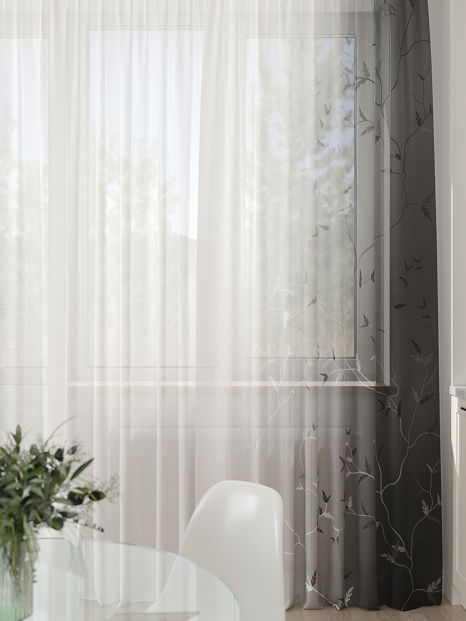 Вуаль – невесомая, практически прозрачная и очень нежная ткань, которая прекрасно смотрится в любом интерьере. Вуалевые шторы изысканны и элегантны как соло, так и в составе шторных ансамблей. Такие гардины придают окну воздушность, легко драпируются, мягко преломляют солнечные лучи и вносят изящество в оформление комнаты. Благодаря широкому ассортименту можно выбрать однотонные вуалевые шторы, либо с орнаментом, с аппликацией или вышивкой, в любом случае ваш выбор будет смотреться красиво и современно.