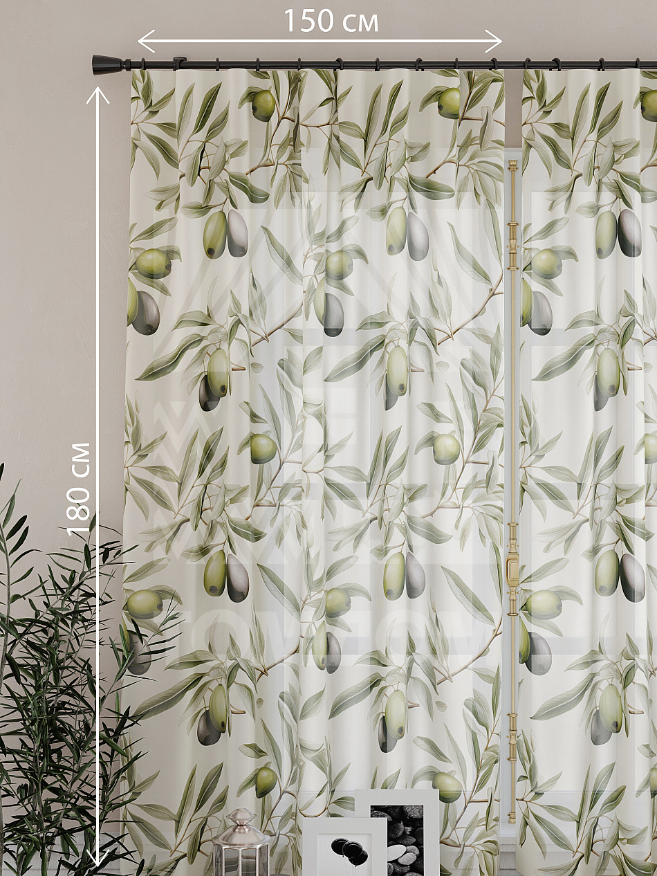 Ширина одного тюля без сборки 150 см, высота 180 см.