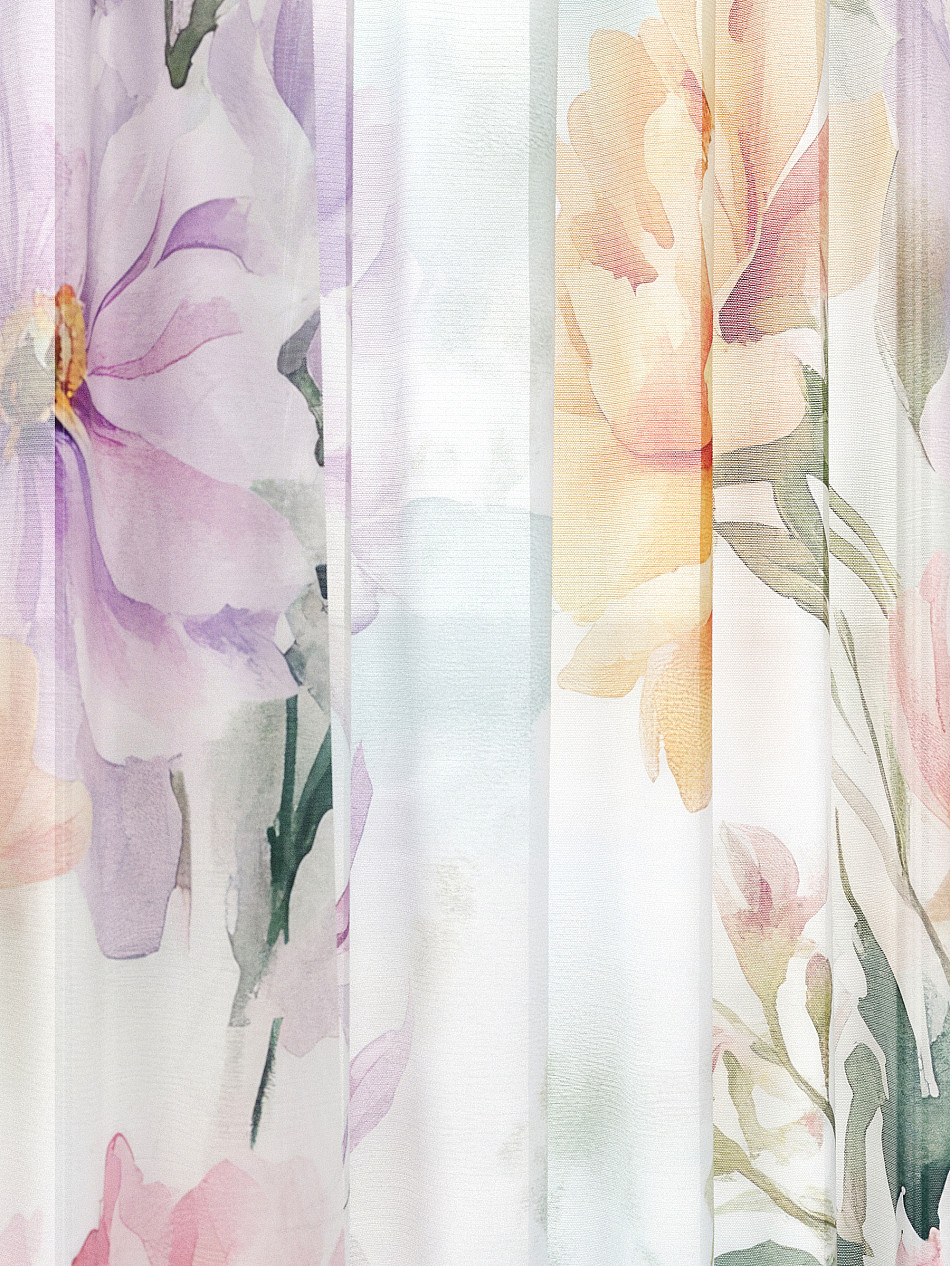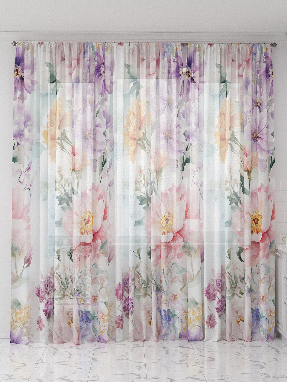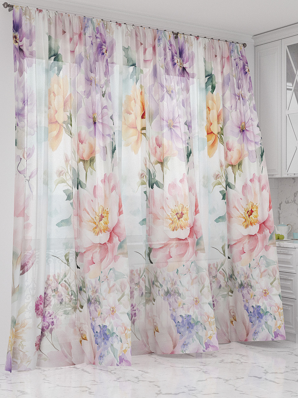 Тюль 3 шт. Легкая основа (вуаль) оформлена фотопечатью. Шторы состоят из 3-х полотен, не сшитых между собой, что обеспечивает легкий доступ к балконной двери. Вуаль с матовой полупрозрачной текстурой. Отличается особым шиком, идеально подходит для создания воздушных штор. Придает ощущение свежести, хорошо пропускает воздух. Ткань неприхотлива в уходе, хорошо стирается без разрушения волокон с течением времени за счет высокого кручения нитей.