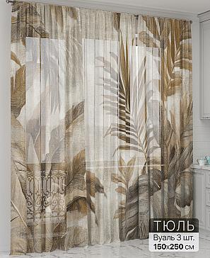 Тюль 3 шт. Легкая основа (вуаль) оформлена фотопечатью. Шторы состоят из 3-х полотен, не сшитых между собой, что обеспечивает легкий доступ к балконной двери. Вуаль с матовой полупрозрачной текстурой. Отличается особым шиком, идеально подходит для создания воздушных штор. Придает ощущение свежести, хорошо пропускает воздух. Ткань неприхотлива в уходе, хорошо стирается без разрушения волокон с течением времени за счет высокого кручения нитей.