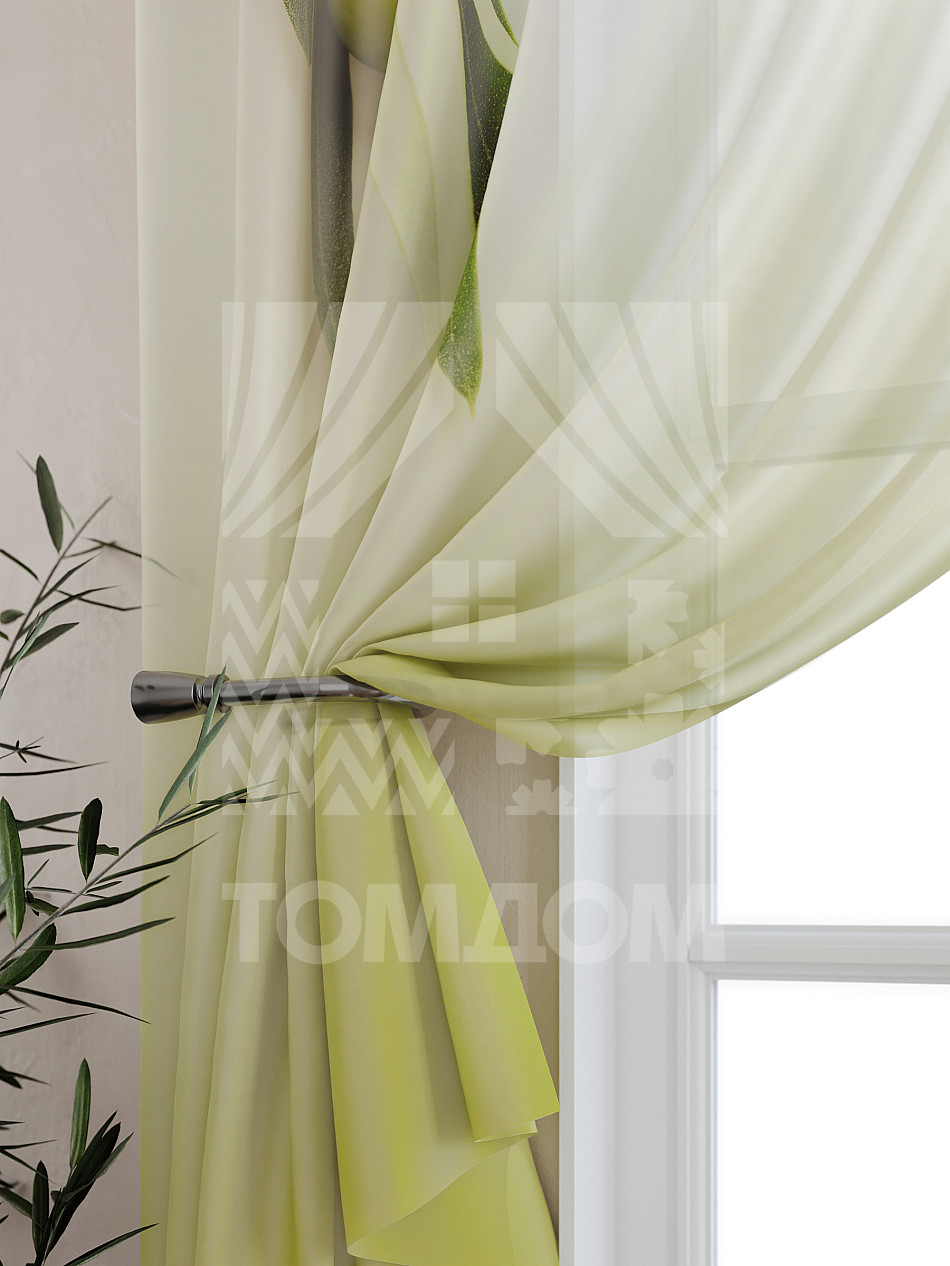 Тюль 2 шт. Подхват - доп.услуга. Легкая основа (вуаль) оформлена принтом. Вуаль с матовой полупрозрачной текстурой. Отличается особым шиком, идеально подходит для создания воздушных штор. Придает ощущение свежести, хорошо пропускает воздух. Ткань неприхотлива в уходе, хорошо стирается без разрушения волокон с течением времени за счет высокого кручения нитей.