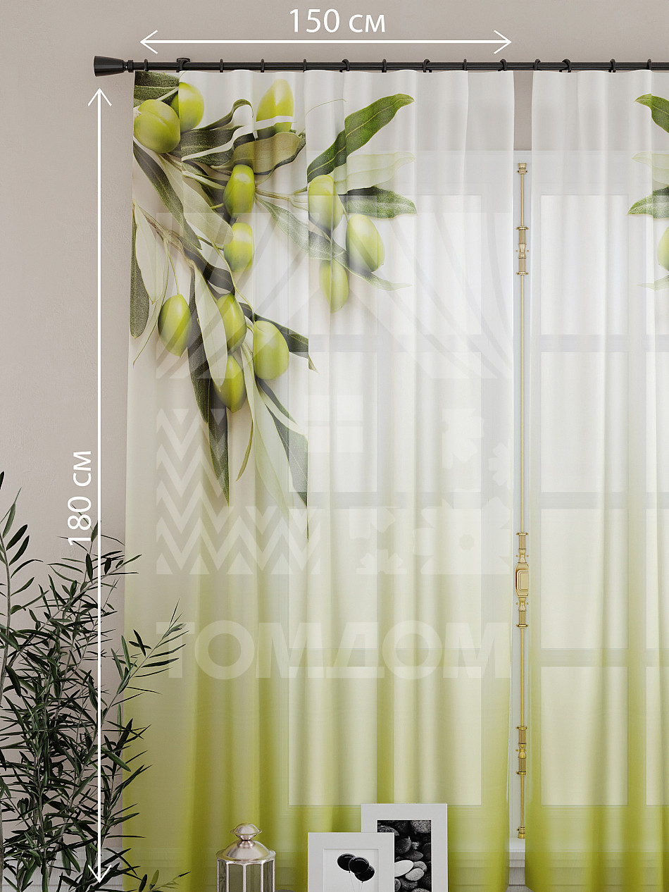 Ширина одного тюля без сборки 150 см, высота 180 см.