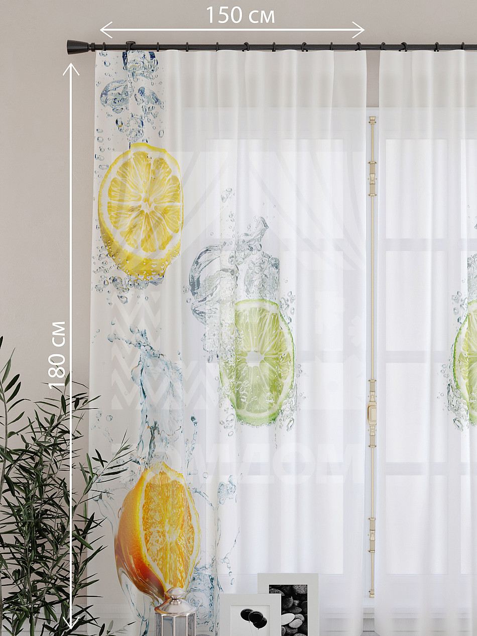 Ширина одного тюля без сборки 150 см, высота 180 см.