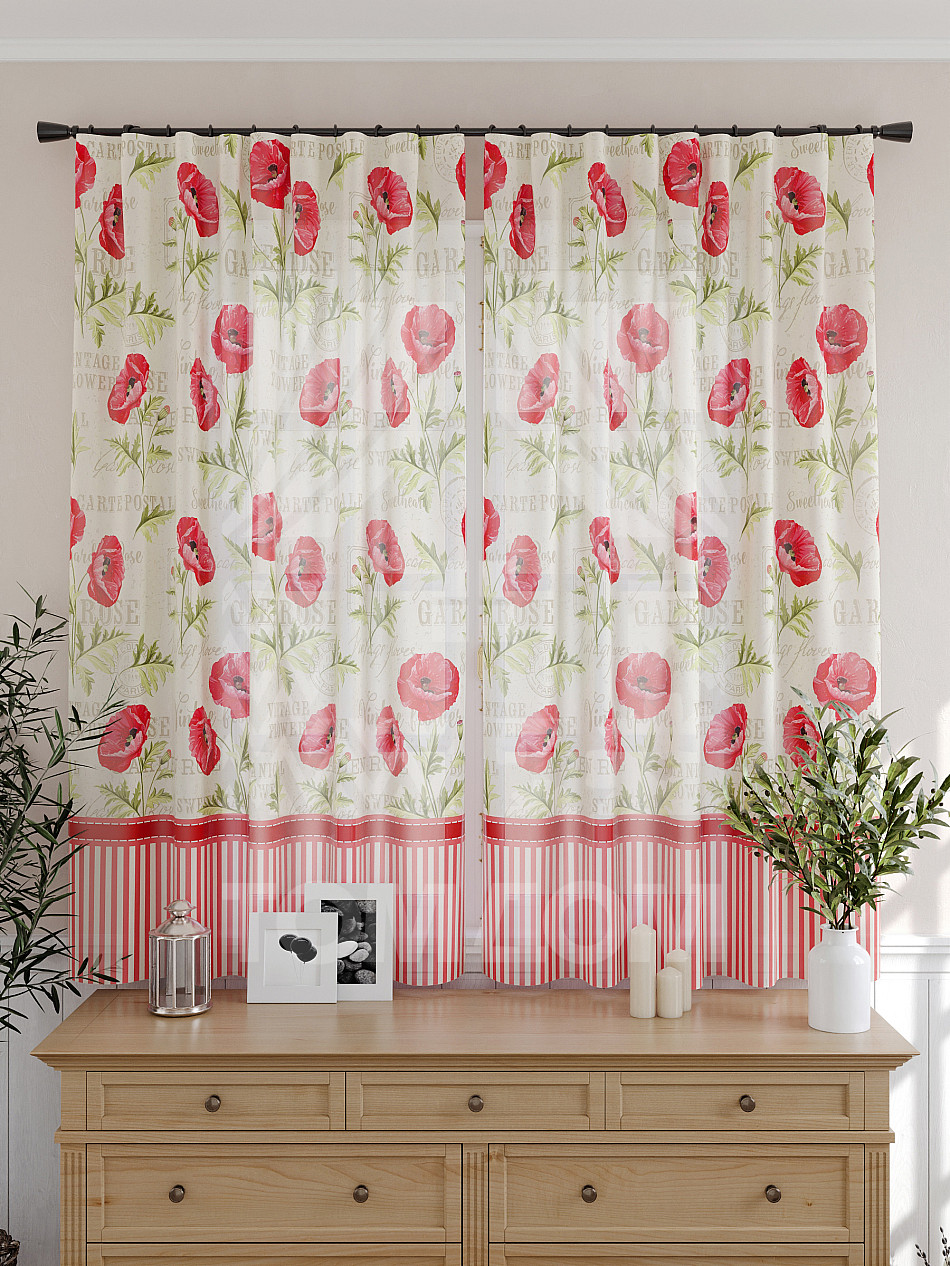 Тюль 2 шт. Подхват - доп.услуга. Легкая основа (вуаль) оформлена принтом. Вуаль с матовой полупрозрачной текстурой. Отличается особым шиком, идеально подходит для создания воздушных штор. Придает ощущение свежести, хорошо пропускает воздух. Ткань неприхотлива в уходе, хорошо стирается без разрушения волокон с течением времени за счет высокого кручения нитей.