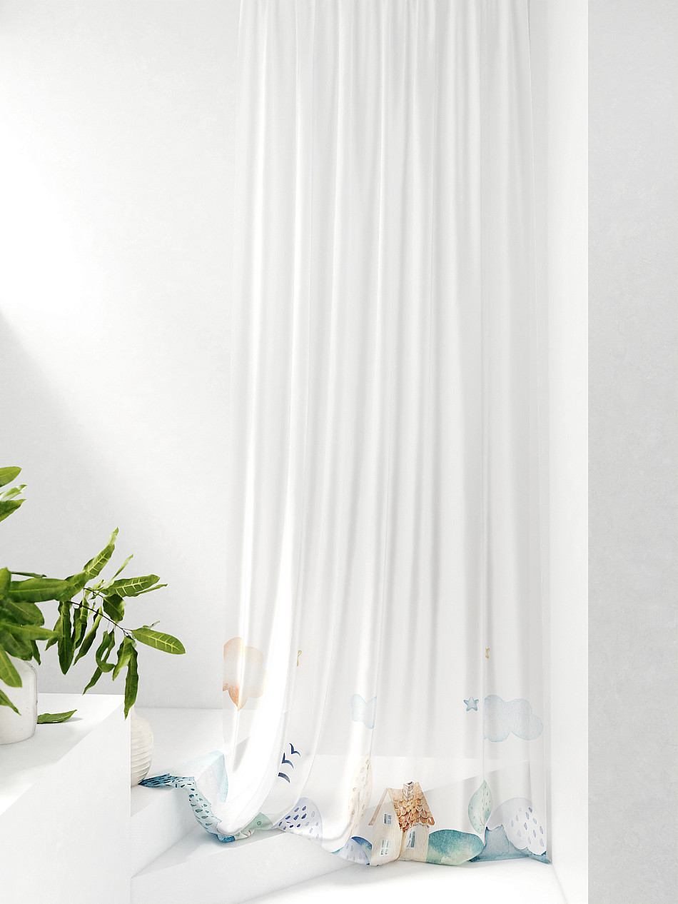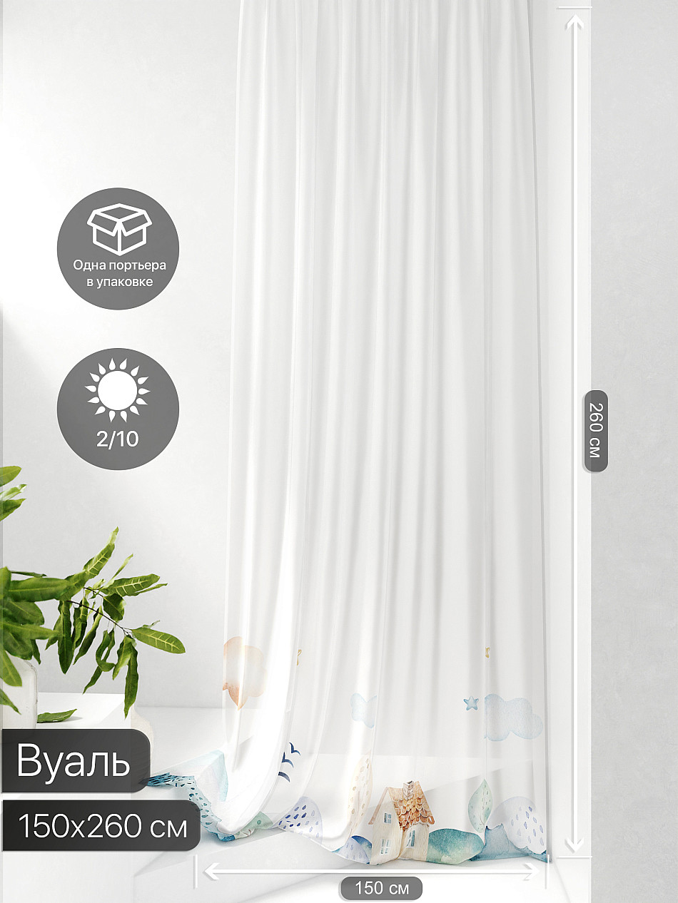 В детскую заказала тюль высотой 180, При получении она показалась более серая, но когда повесили её, она преобразилась. Детям нравится, а это главное. -