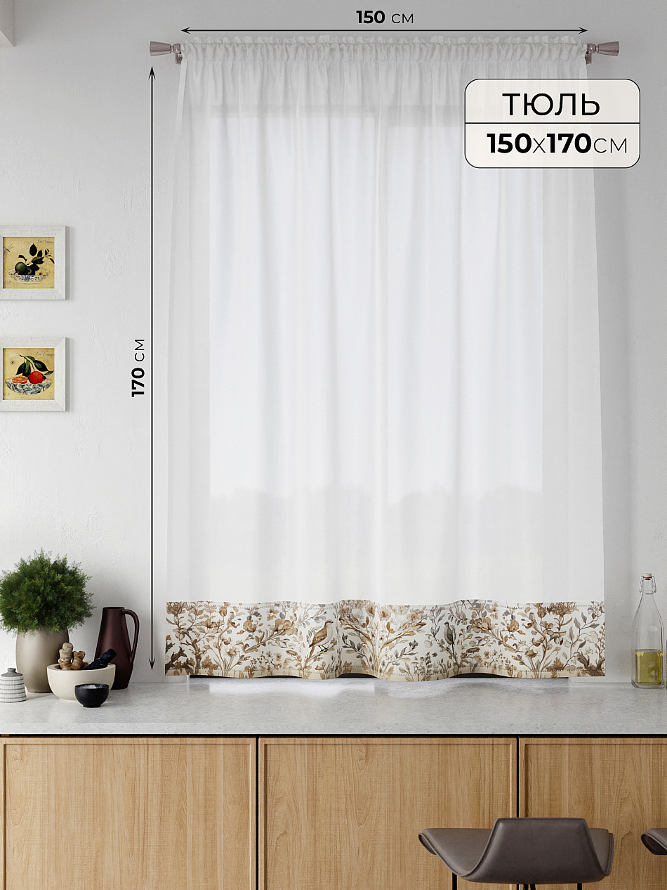 Тюль очень понравился. Повесил в кухне. Смотрится отлично. Качество материала отличное. Рекомендую к покупке. -