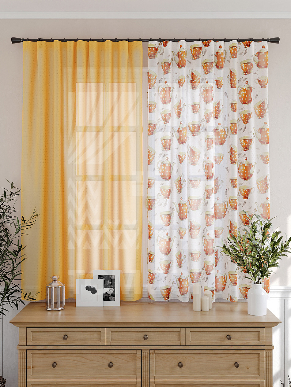 - Вуаль портьеры для кухни с принтом