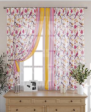 Тюль 2 шт. Подхват - доп.услуга. Легкая основа (вуаль) оформлена принтом. Вуаль с матовой полупрозрачной текстурой. Отличается особым шиком, идеально подходит для создания воздушных штор. Придает ощущение свежести, хорошо пропускает воздух. Ткань неприхотлива в уходе, хорошо стирается без разрушения волокон с течением времени за счет высокого кручения нитей.