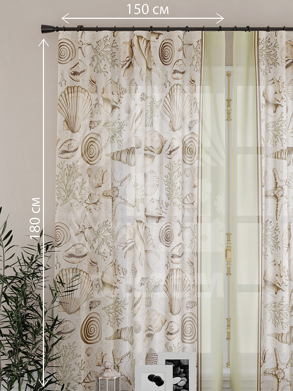 Ширина одного тюля без сборки 150 см, высота 180 см.