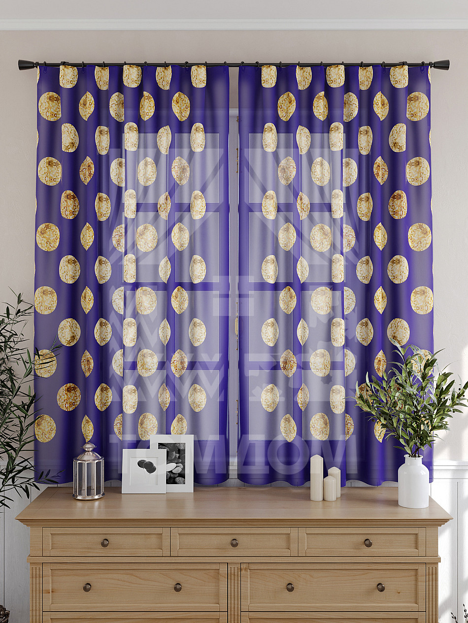 Тюль 2 шт. Подхват - доп.услуга. Легкая основа (вуаль) оформлена принтом. Вуаль с матовой полупрозрачной текстурой. Отличается особым шиком, идеально подходит для создания воздушных штор. Придает ощущение свежести, хорошо пропускает воздух. Ткань неприхотлива в уходе, хорошо стирается без разрушения волокон с течением времени за счет высокого кручения нитей.