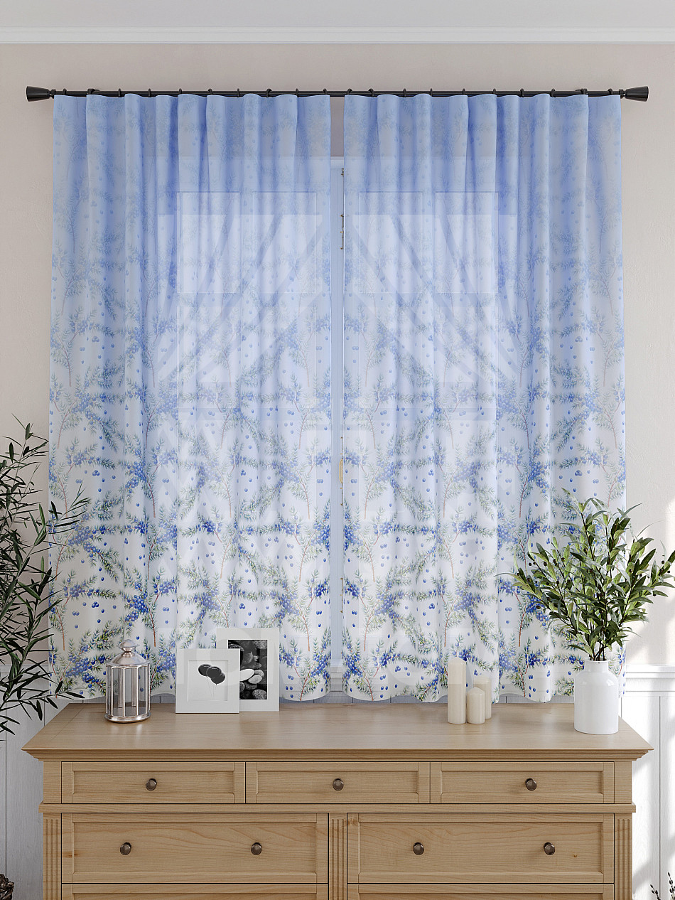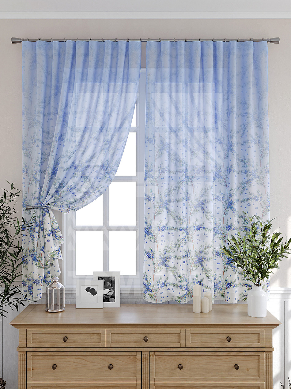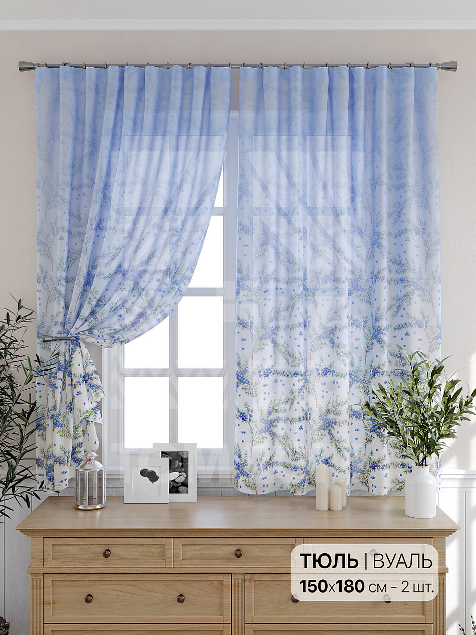 Тюль 2 шт. Подхват - доп.услуга. Легкая основа (вуаль) оформлена принтом. Вуаль с матовой полупрозрачной текстурой. Отличается особым шиком, идеально подходит для создания воздушных штор. Придает ощущение свежести, хорошо пропускает воздух. Ткань неприхотлива в уходе, хорошо стирается без разрушения волокон с течением времени за счет высокого кручения нитей.