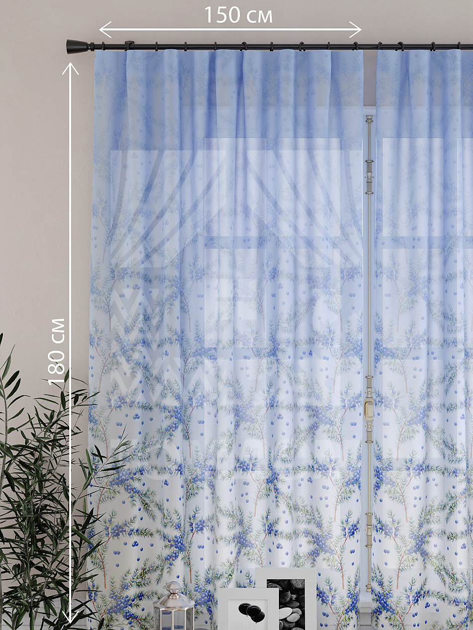 Ширина одного тюля без сборки 150 см, высота 180 см.