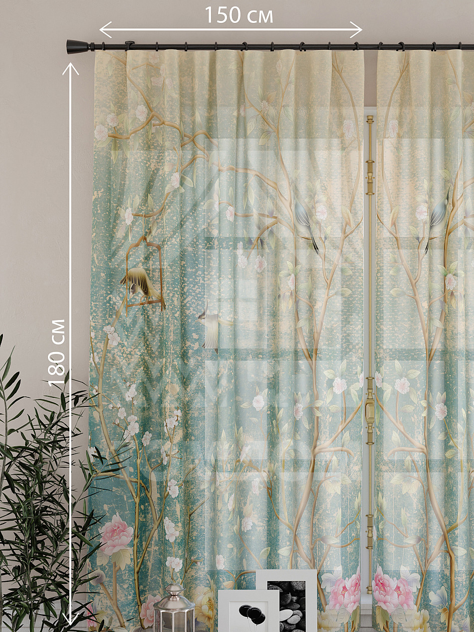 Ширина одного тюля без сборки 150 см, высота 180 см.