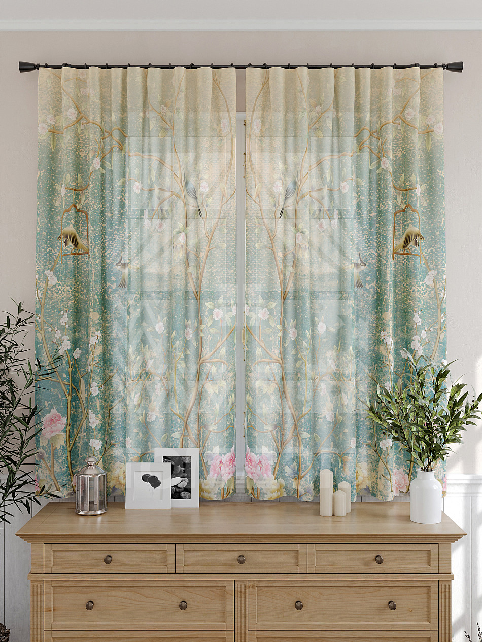 Тюль 2 шт. Подхват - доп.услуга. Легкая основа (вуаль) оформлена принтом. Вуаль с матовой полупрозрачной текстурой. Отличается особым шиком, идеально подходит для создания воздушных штор. Придает ощущение свежести, хорошо пропускает воздух. Ткань неприхотлива в уходе, хорошо стирается без разрушения волокон с течением времени за счет высокого кручения нитей.