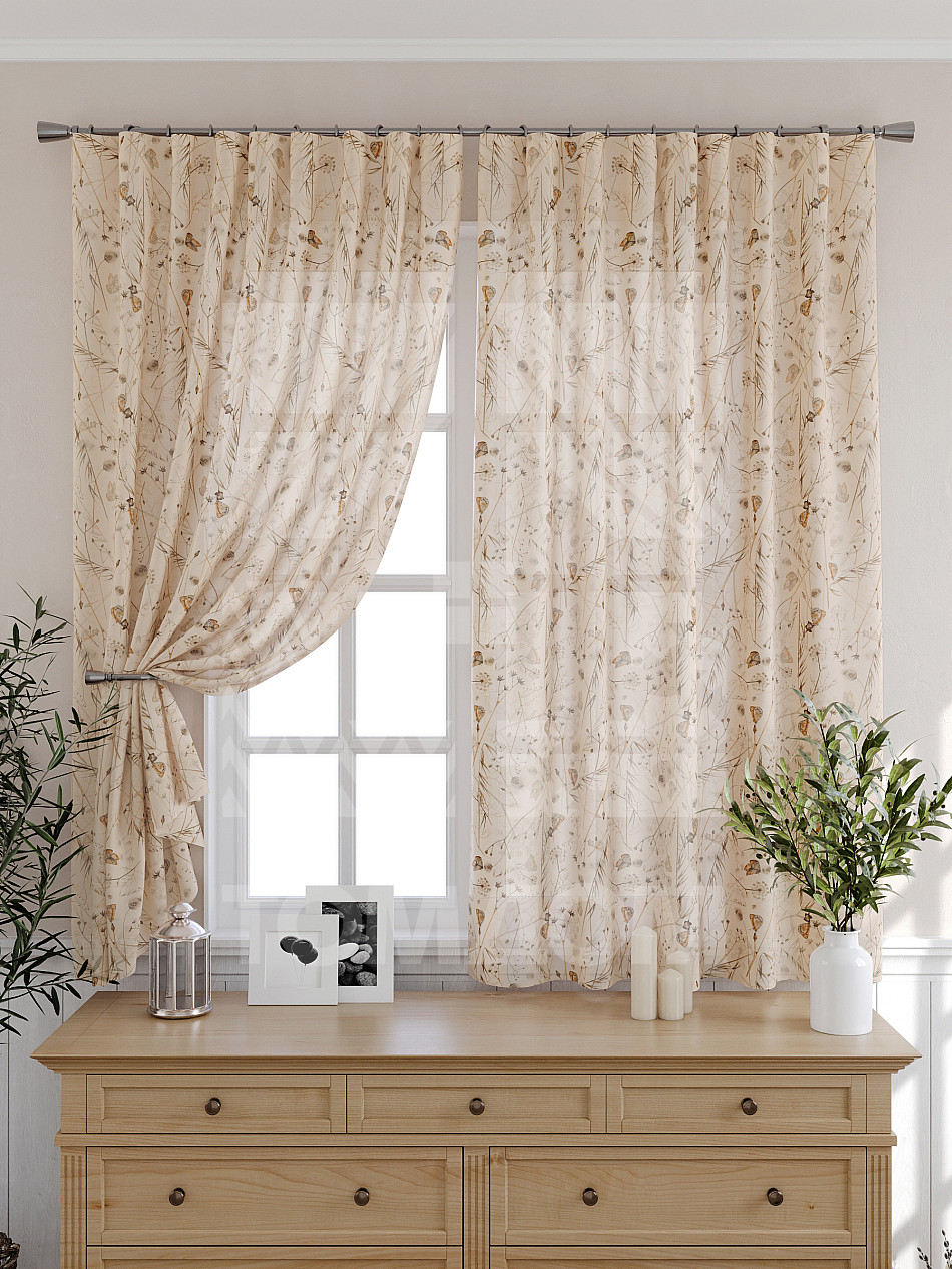 Тюль 2 шт. Подхват - доп.услуга. Легкая основа (вуаль) оформлена принтом. Вуаль с матовой полупрозрачной текстурой. Отличается особым шиком, идеально подходит для создания воздушных штор. Придает ощущение свежести, хорошо пропускает воздух. Ткань неприхотлива в уходе, хорошо стирается без разрушения волокон с течением времени за счет высокого кручения нитей.