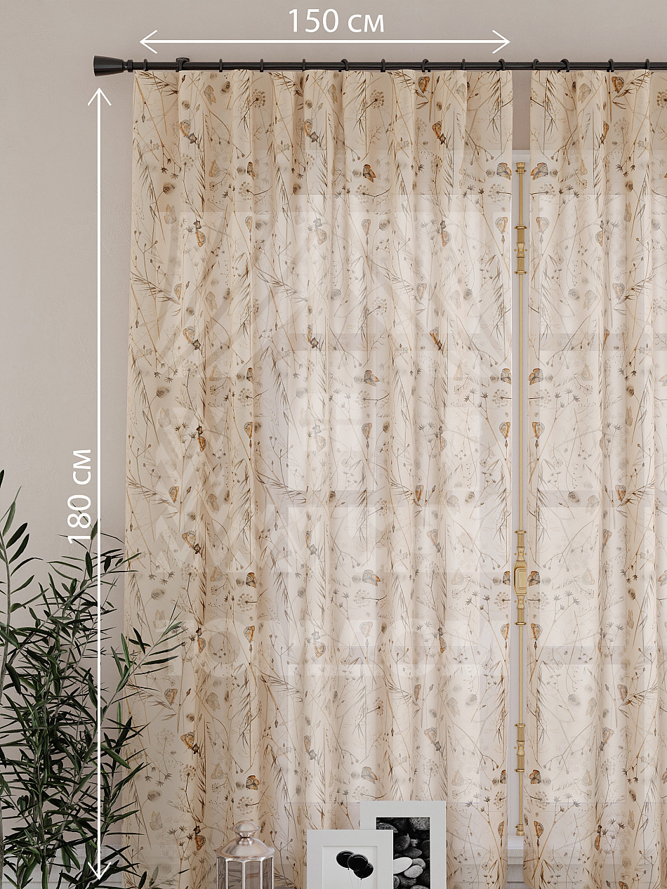Ширина одного тюля без сборки 150 см, высота 180 см.