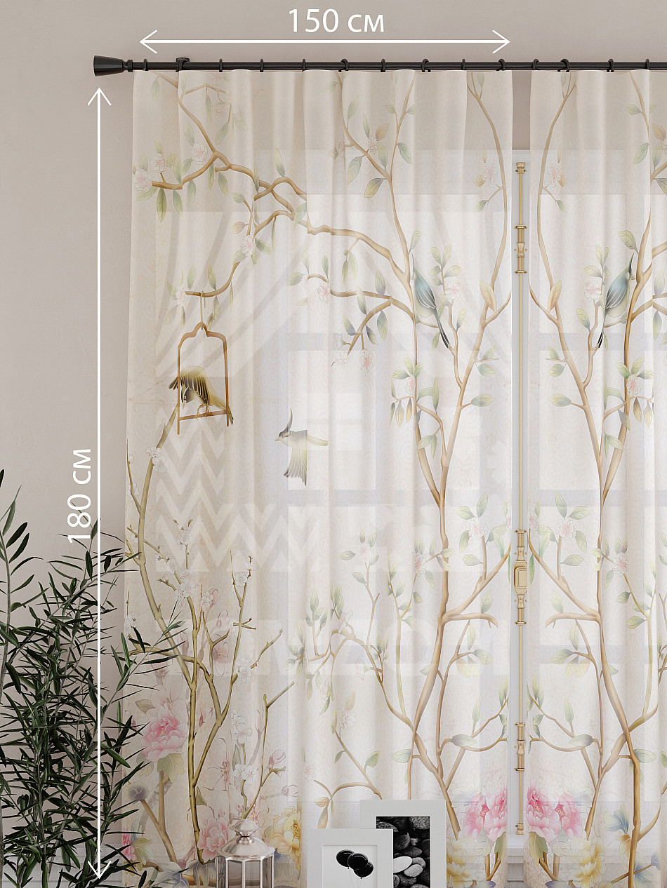 Тюль 2 шт. Подхват - доп.услуга. Легкая основа (вуаль) оформлена принтом. Вуаль с матовой полупрозрачной текстурой. Отличается особым шиком, идеально подходит для создания воздушных штор. Придает ощущение свежести, хорошо пропускает воздух. Ткань неприхотлива в уходе, хорошо стирается без разрушения волокон с течением времени за счет высокого кручения нитей.