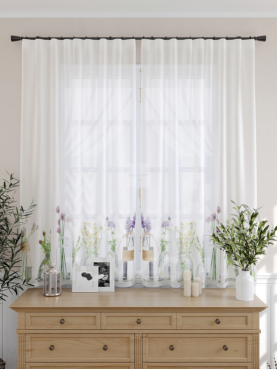 Тюль 2 шт. Подхват - доп.услуга. Легкая основа (вуаль) оформлена принтом. Вуаль с матовой полупрозрачной текстурой. Отличается особым шиком, идеально подходит для создания воздушных штор. Придает ощущение свежести, хорошо пропускает воздух. Ткань неприхотлива в уходе, хорошо стирается без разрушения волокон с течением времени за счет высокого кручения нитей.