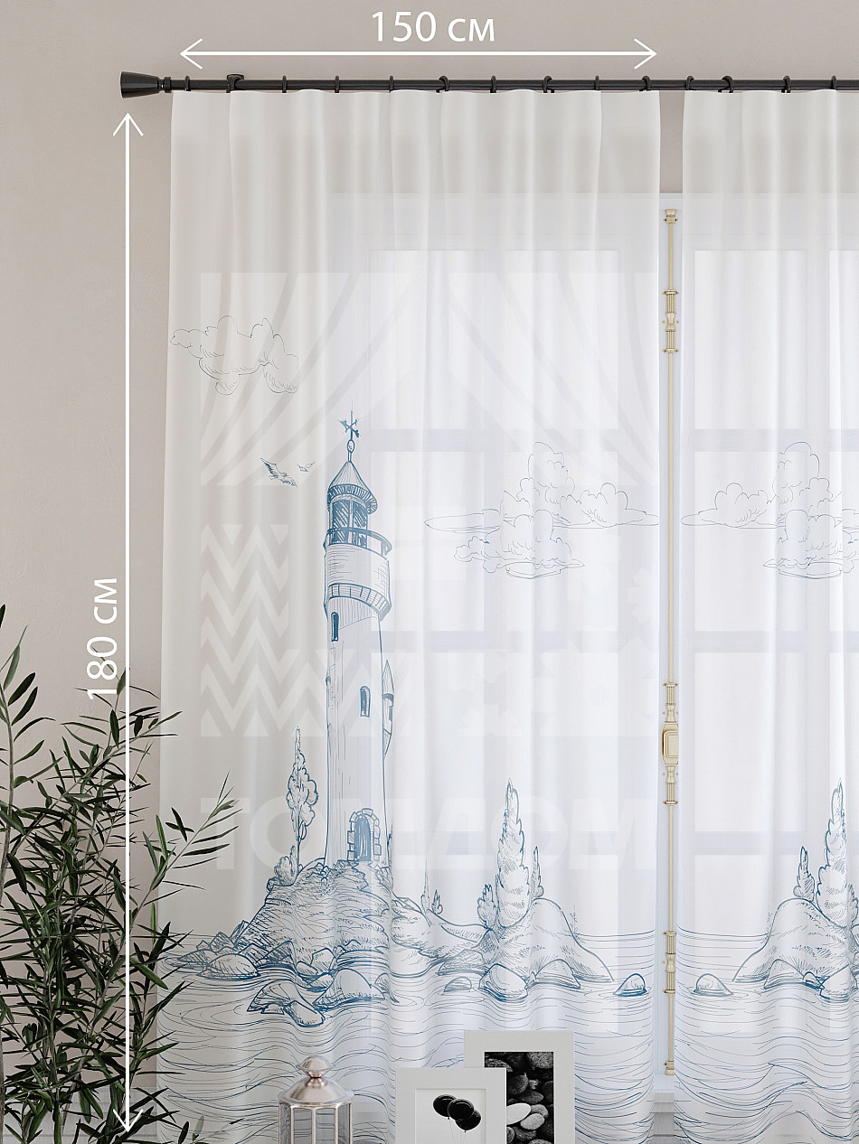 Ширина одного тюля без сборки 150 см, высота 180 см.